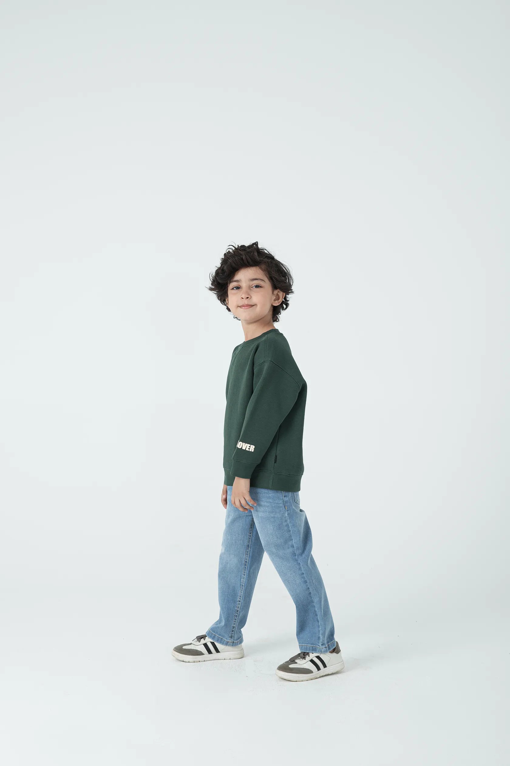 Drop shoulders, ribbed texture, and a deep green tone make this fleece pullover a style standout. The contrast stitch detail at the neckline adds structure without stiffness. Warm enough for chill days, cool enough for any occasion—it’s built for kids who like their comfort with a dose of attitude.