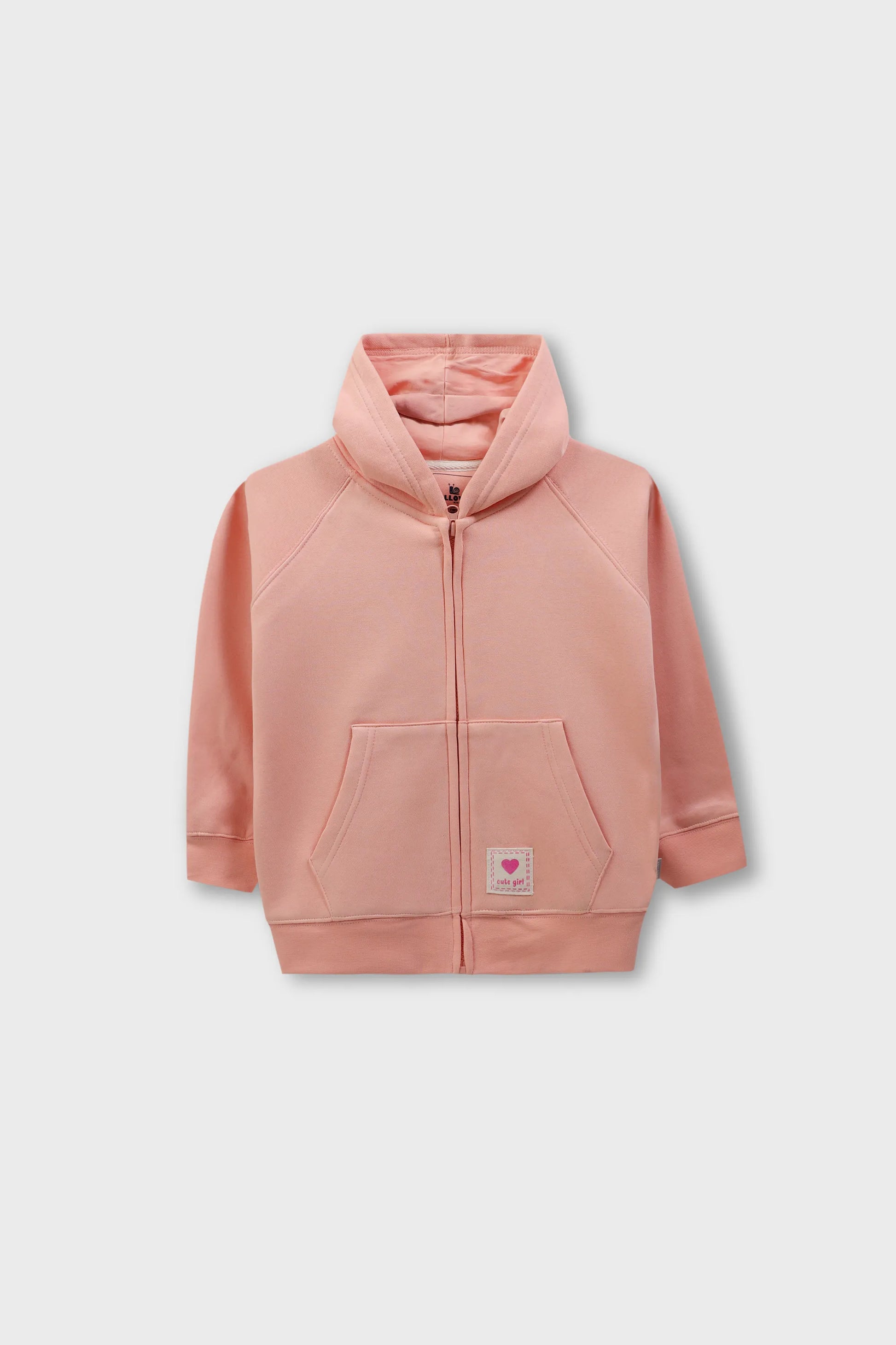 Wrap her in soft fleece warmth with this zip-up peach hoodie, featuring a cozy hood, relaxed fit, full-length raglan sleeves and front kangaroo pockets. The delicate shade adds charm, while the clean design keeps it versatile. Perfect for playground adventures, after-school strolls, or cozy movie nights at home.