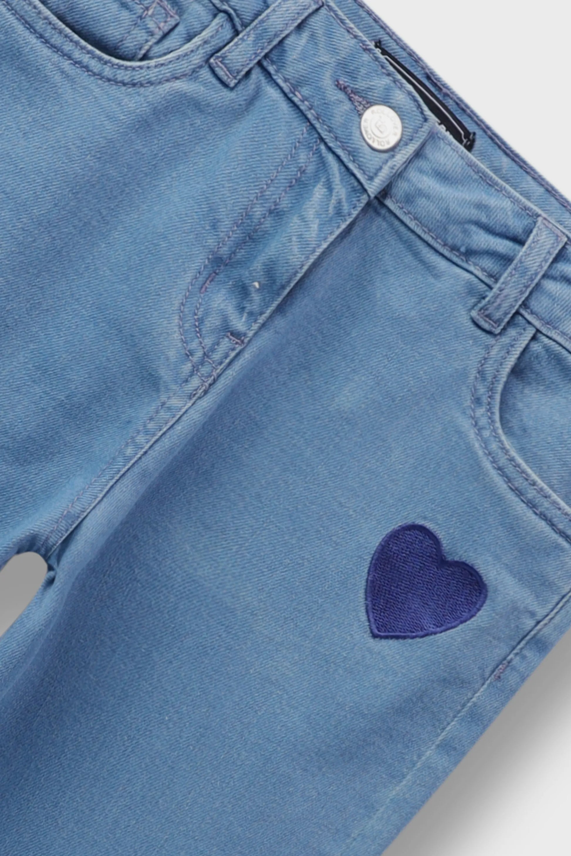These girls’ jeans combine comfort and charm with their wide-leg cut and soft denim fabric. The bold heart patches bring a fun, youthful touch. Designed with a button-zip closure and smooth stitching, these jeans are perfect for everyday wear while keeping your child’s look effortlessly trendy and adorable.