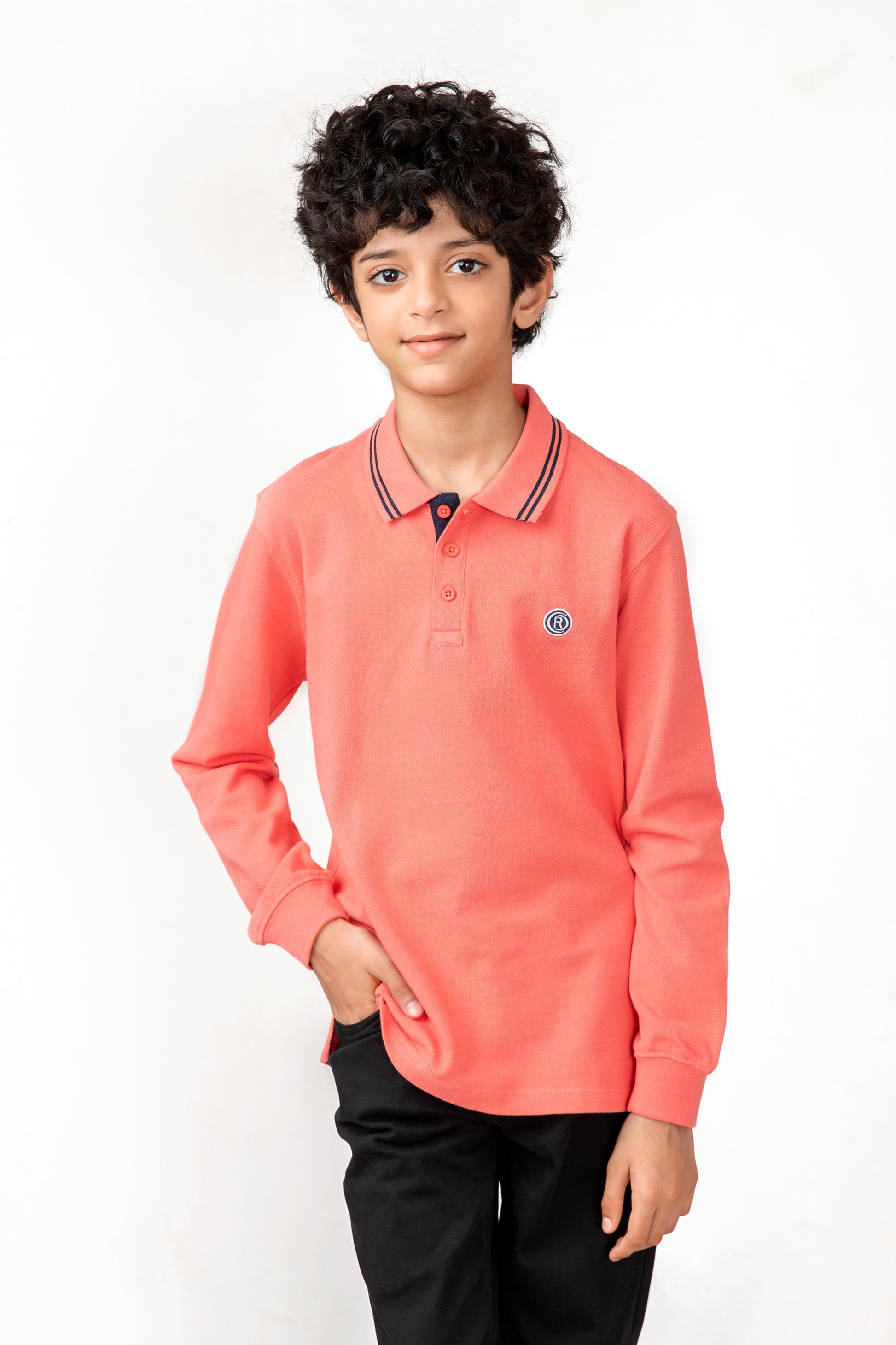 A timeless addition to your child’s wardrobe, this coral polo shirt combines classic style with modern comfort. Crafted from high-quality pique fabric featuring a ribbed collar with contrasting black stripes, and a button placket to make it a comfortable fit for a casual look or chinos for a dressier occasion.