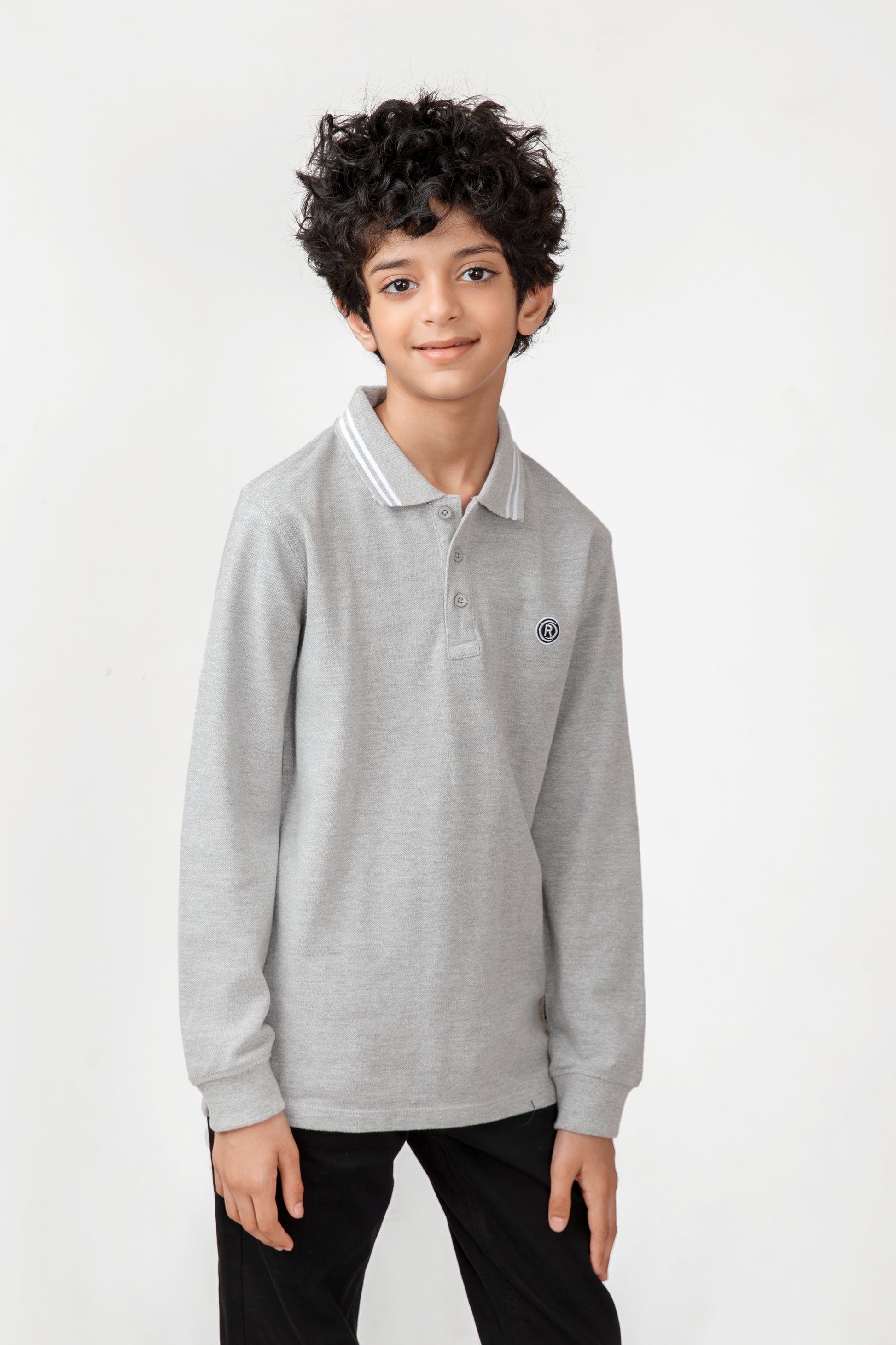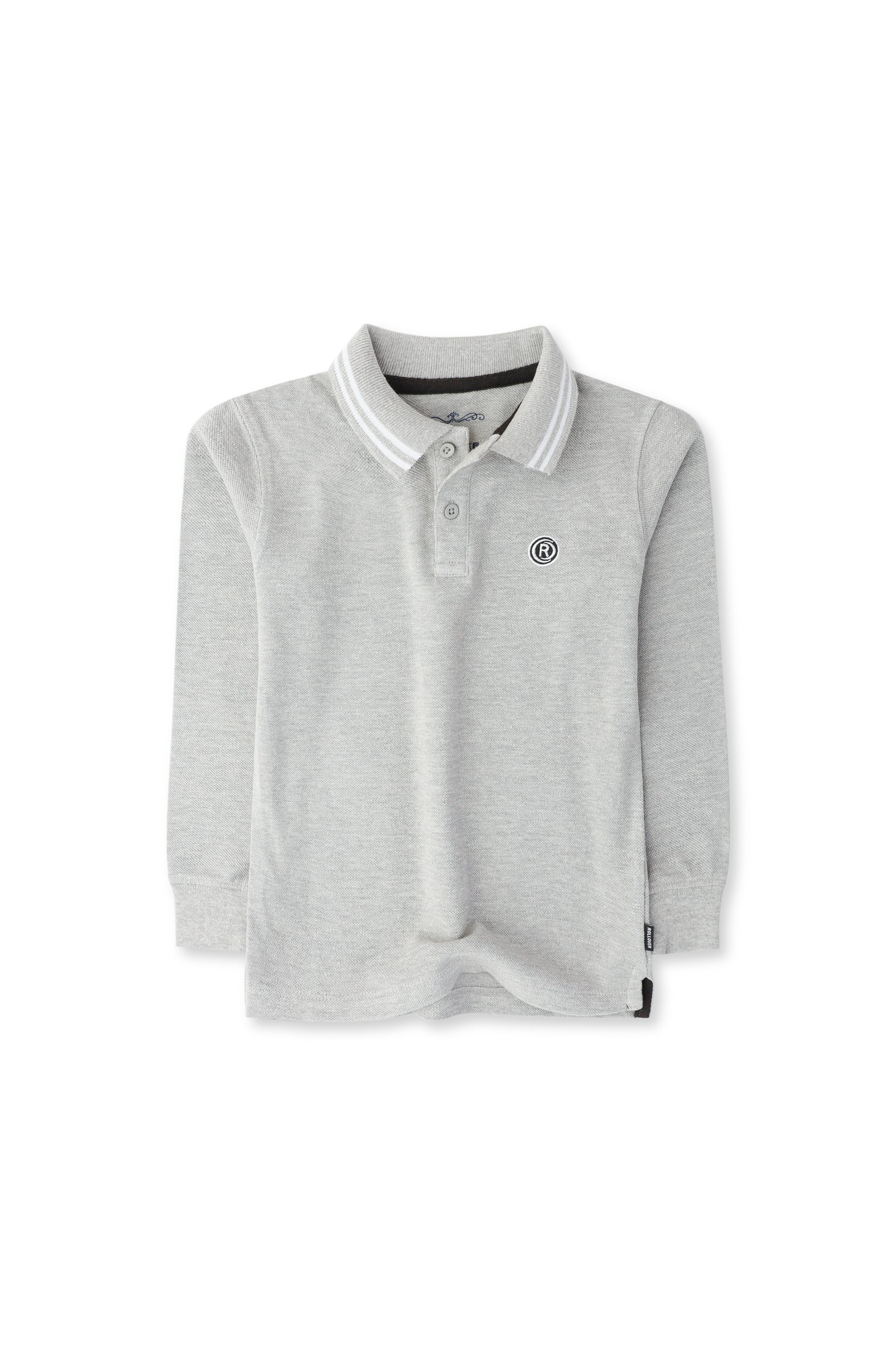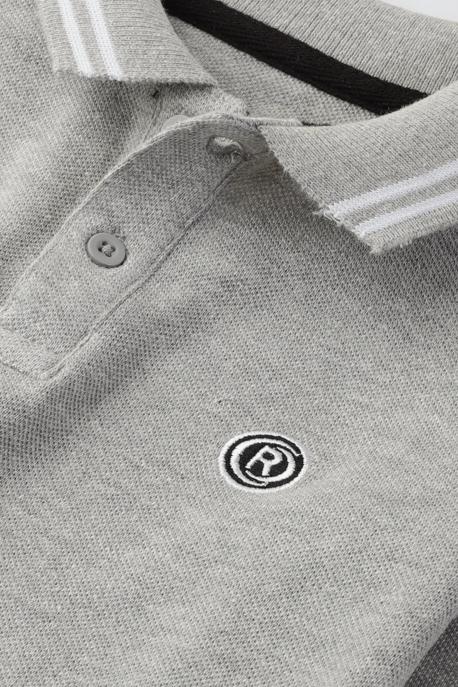 Introduce your little one to classic style with this grey polo shirt. The white-striped collar, button placket and ribbed cuffs provide a polished finish. Made from premium pique fabric, this shirt ensures comfort and durability, making it ideal for everyday wear offering a timeless style and versatility for any occasion.