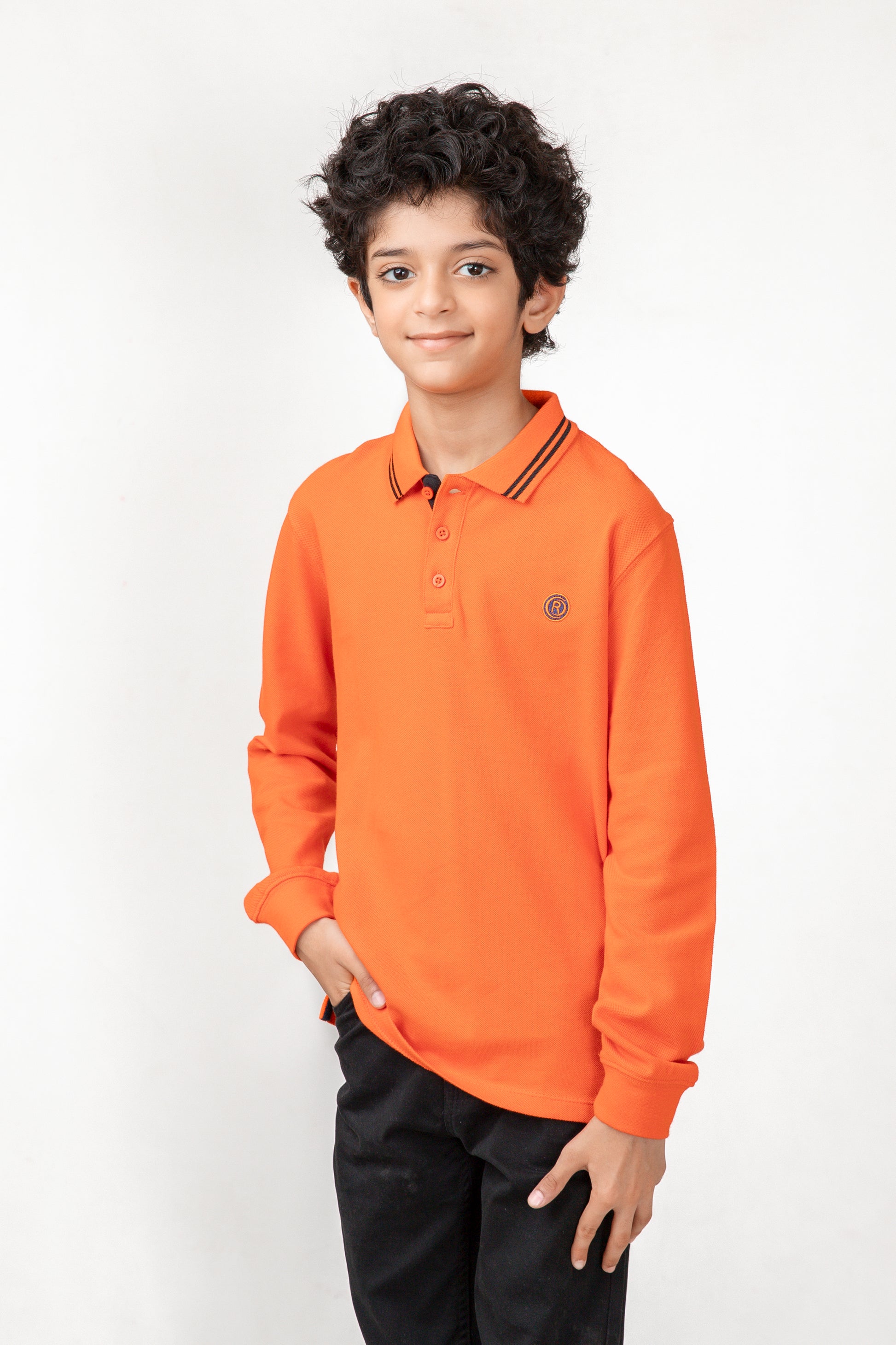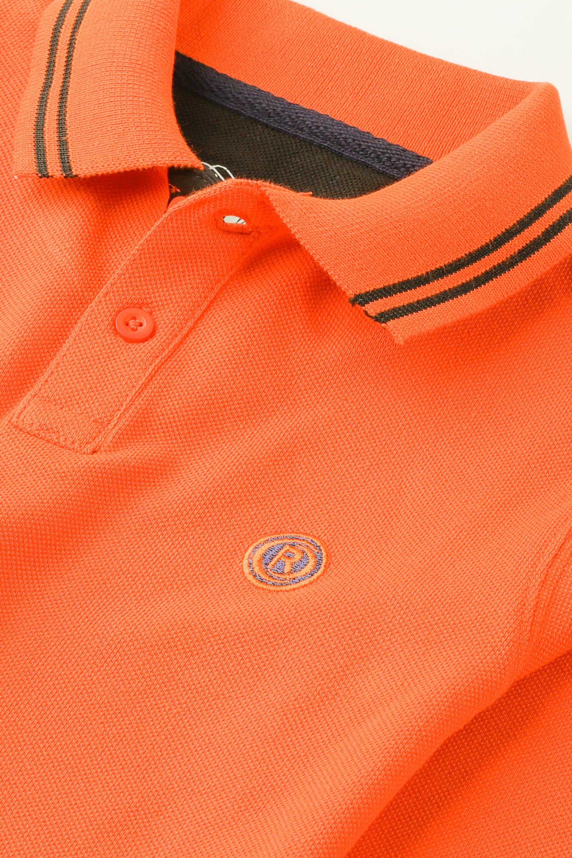 Introduce your little one to classic style with this rust polo shirt. The black-striped collar, button placket and ribbed cuffs provide a polished finish. Made from premium pique fabric, this shirt ensures comfort and durability, making it ideal for everyday wear offering a timeless style and versatility for any occasion.