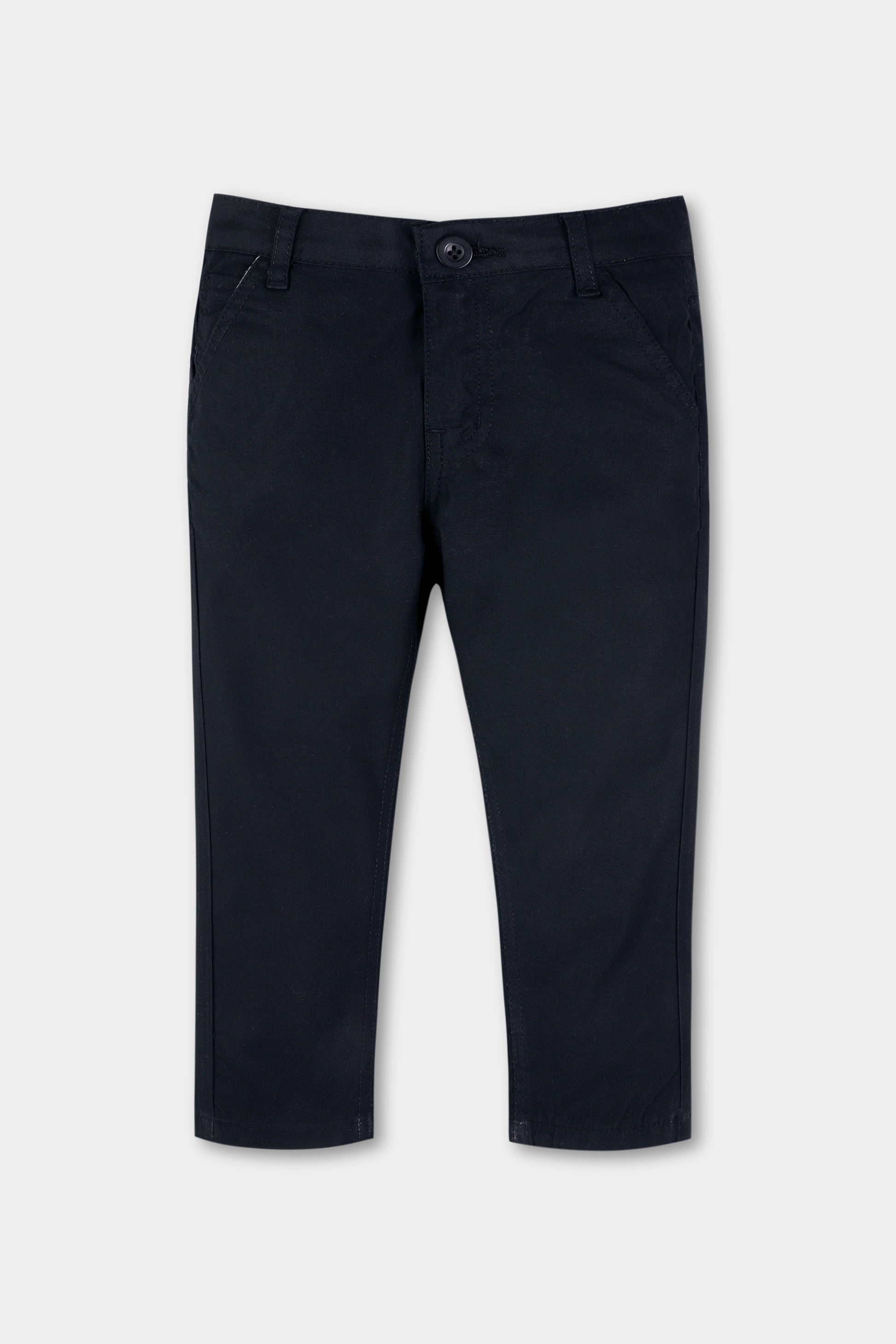 Boys Nvay Slim Fit Pants offer a sleek and modern look, crafted from premium twill fabric. The slim-fit design with a tapered leg and narrow bottom ensures a stylish and comfortable fit. Perfect for any occasion, these solid navy pants combine fashion with functionality for boys who value both comfort and style.