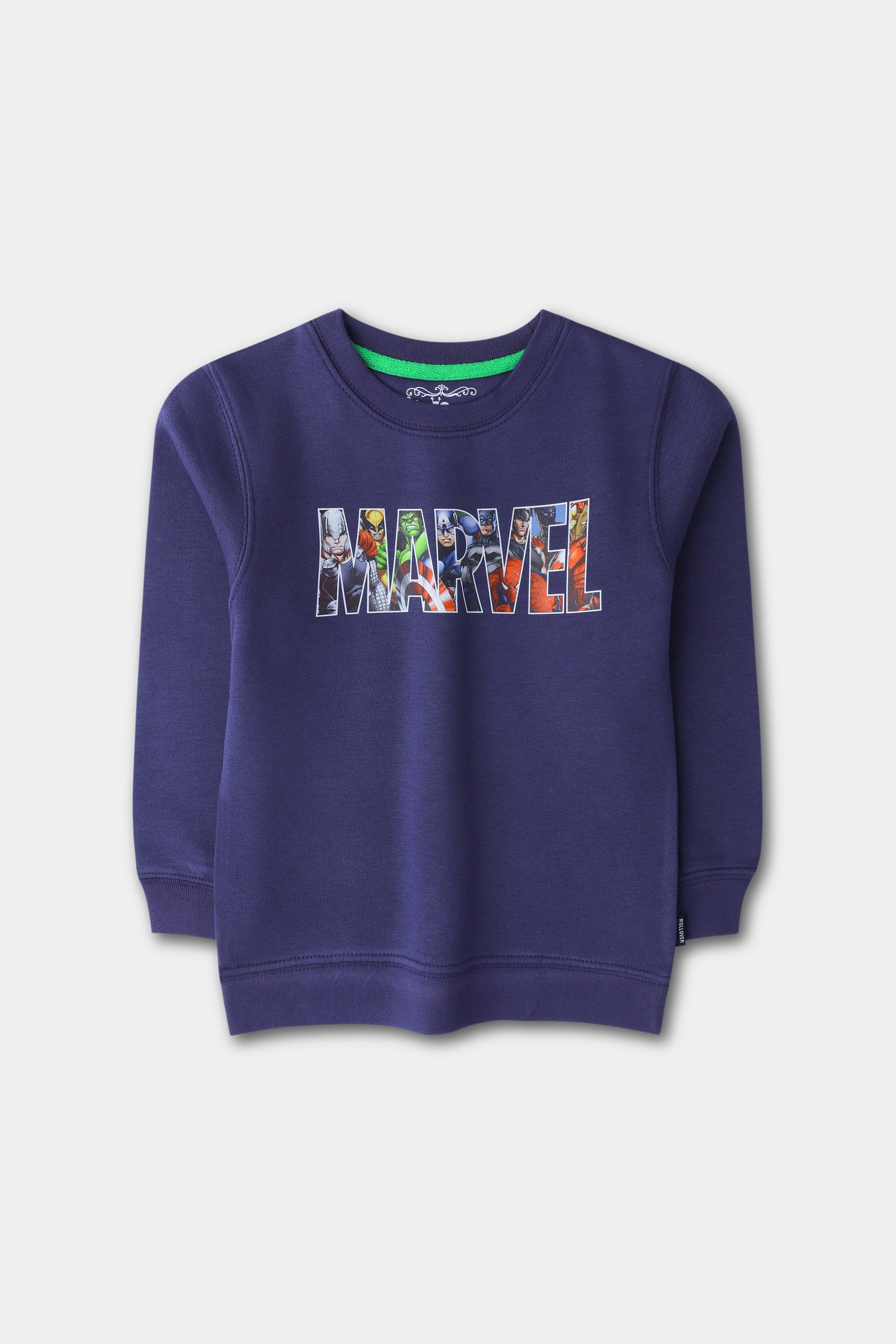 Featuring a vibrant Marvel graphic on the chest, this boys' sweatshirt in navy blue fleece is perfect for everyday wear. The soft fleece fabric keeps him warm, while ribbed cuffs and hem ensure a comfortable fit. Ideal for fans of the Marvel Universe, this sweatshirt adds superhero style to his outfit, whether he's at school or playing outdoors.