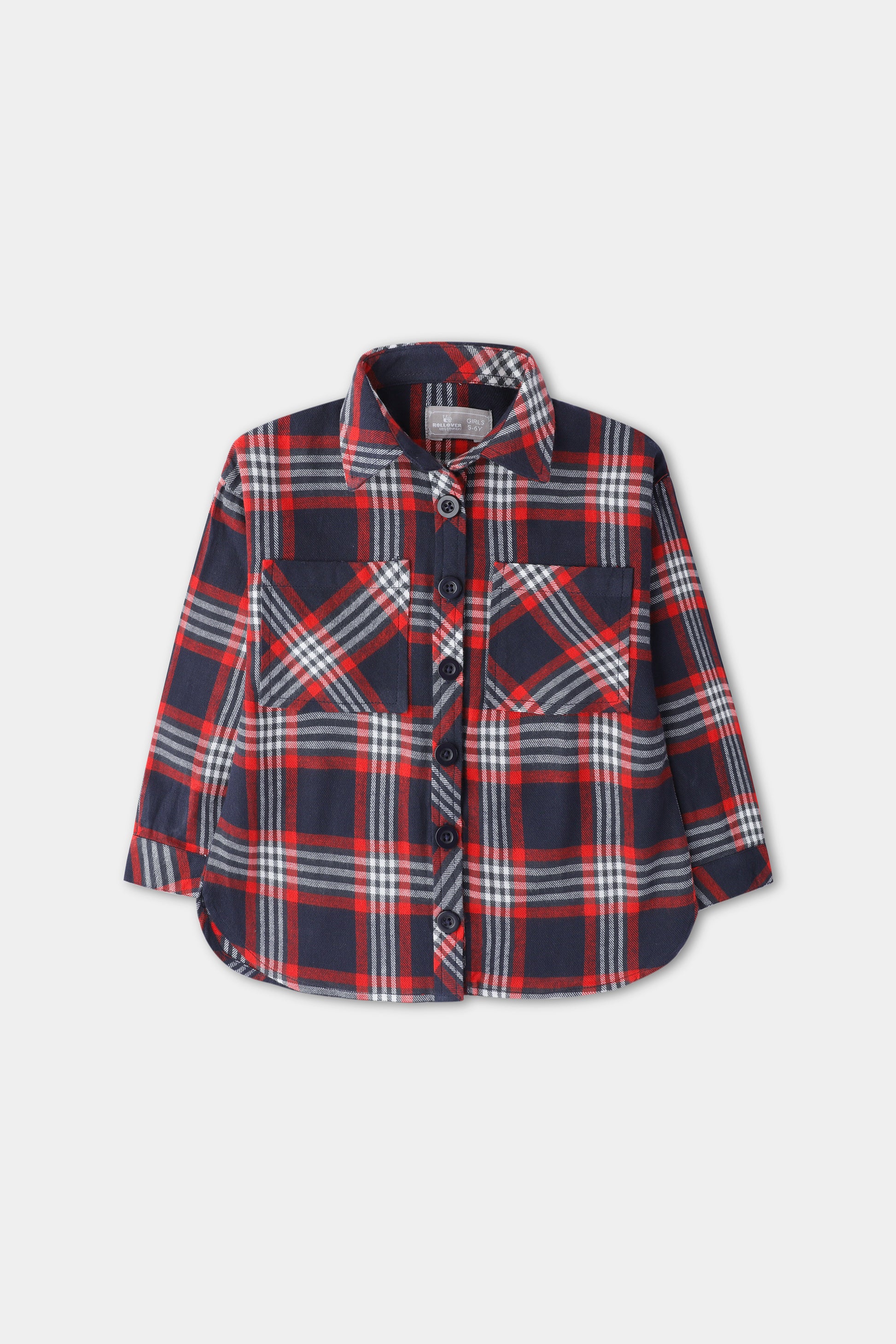 This adorable red and navy blue checkered top is crafted in soft flannel for ultimate coziness. Featuring a classic collar, front button placket, and two cute chest pockets, it’s a perfect mix of style and comfort. The cuffed sleeves add a charming touch, making this top ideal for chilly outings and cozy days.