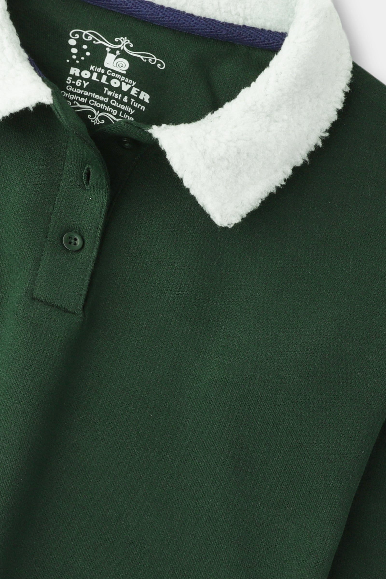 Girls Green Collared Fleece Sweatshirt Girls Green Collared Fleece Sweatshirt
