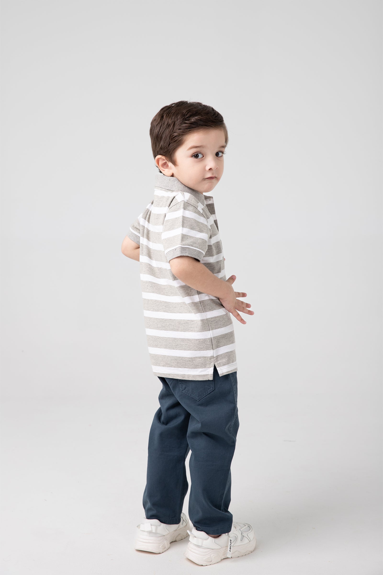 Boys Grey Striped Signature Polo Boys Grey Striped Signature Polo