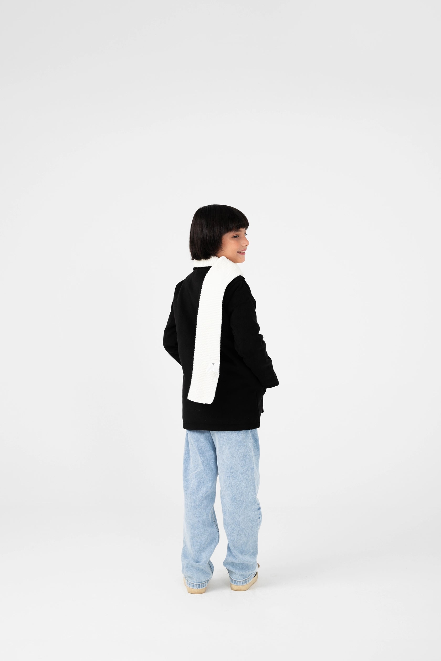 Sophisticated yet bold, this black felt coat brings timeless style to chilly days. Featuring a sharp double-press lapel, three-button closure, and double bone pockets with detailed champa stitching, it’s a nod to classic tailoring. Designed for warmth and flair, it adds effortless polish to every winter outing.