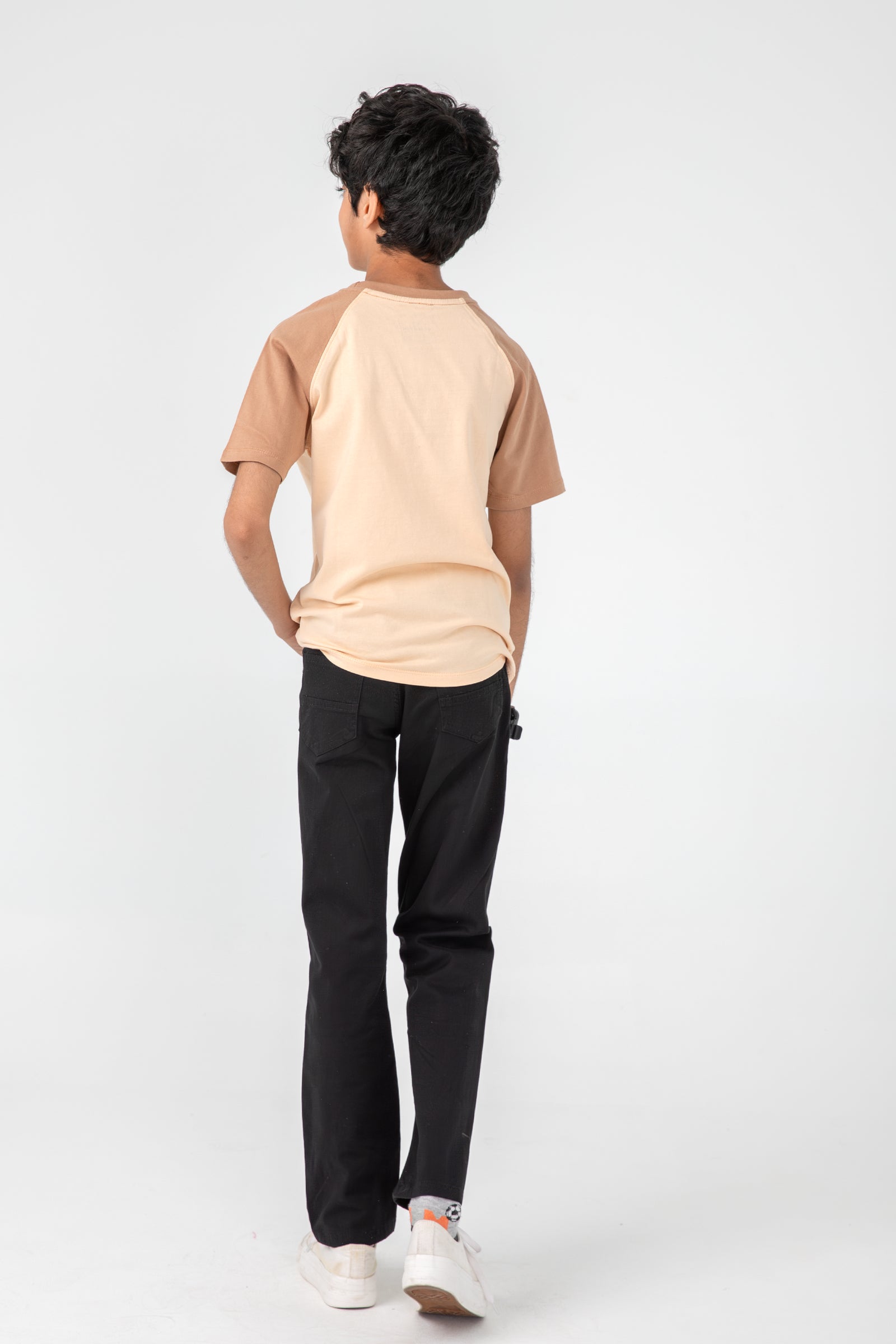 Boys Solid Beige Raglan T-shirt Boys Solid Beige Raglan T-shirt