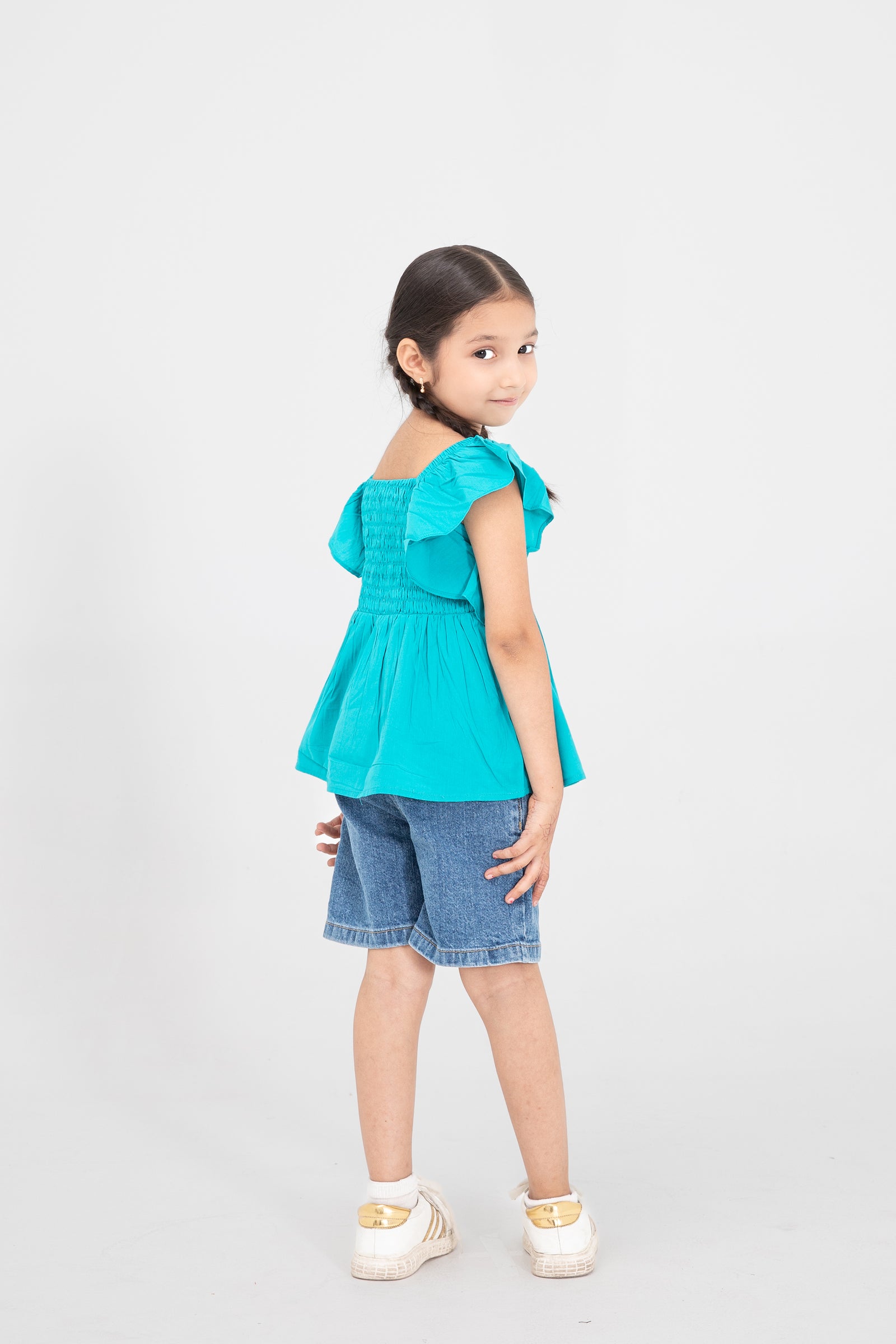Green Pearl Embellished Smocked Top Green Pearl Embellished Smocked Top