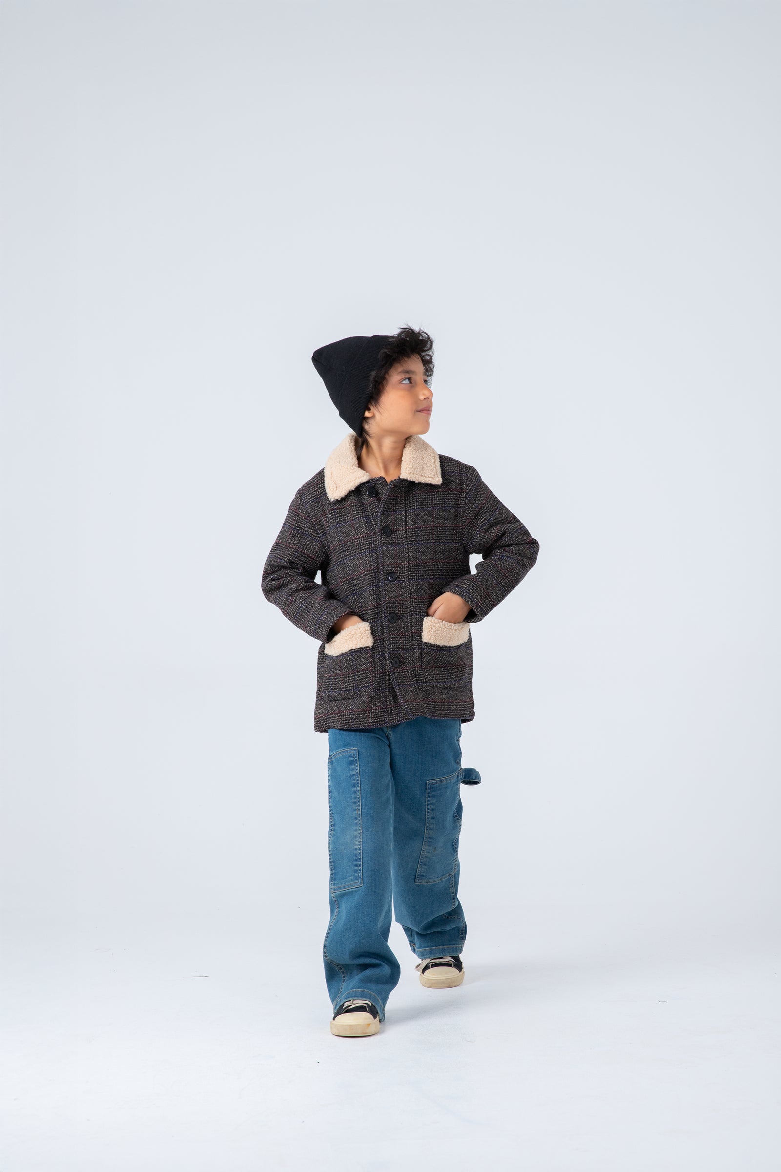 Boys Brown Checkered Felt Jacket Boys Brown Checkered Felt Jacket