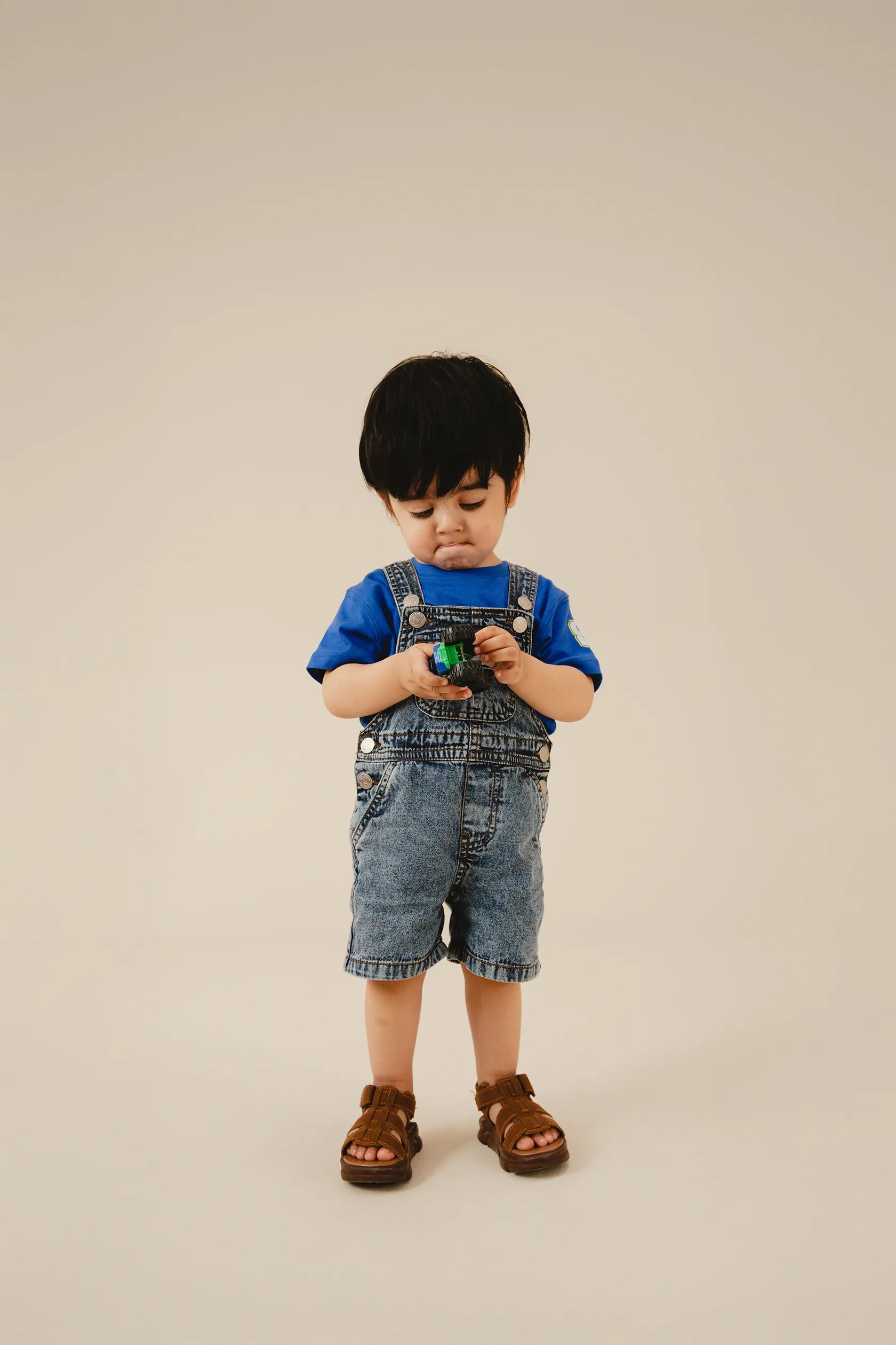 Brighten up any playdate with the Playful Vibes Dungaree Set. Featuring a crisp baby blue tee and matching knee-length denim dungaree, this outfit is all about fun. The dungaree includes pockets for treasures and adjustable straps for maximum comfort.
