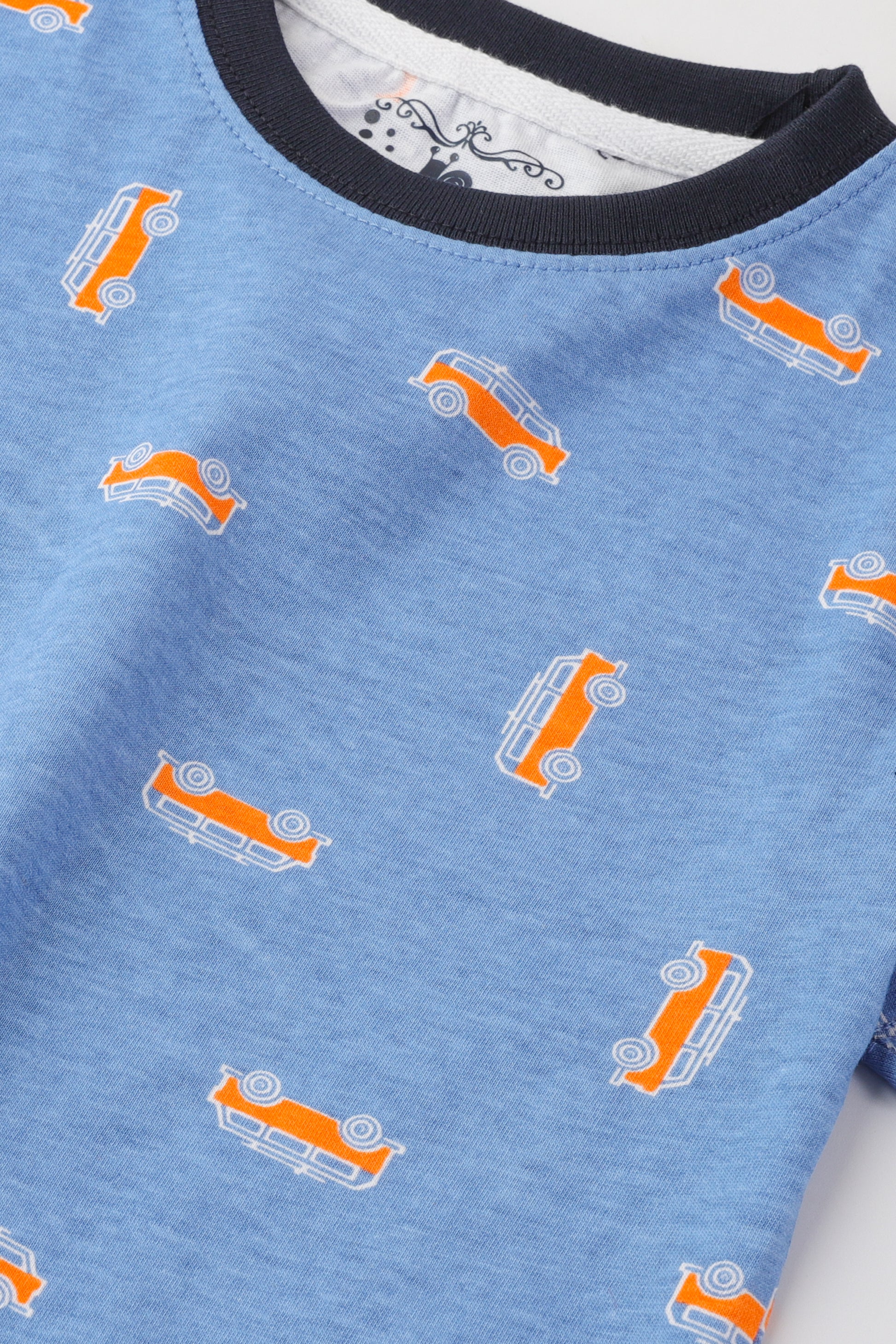 Glide through the city streets in style with our dark indigo rotary bus printed crew neck t-shirt for little boys. It's a whimsical adventure waiting to happen!