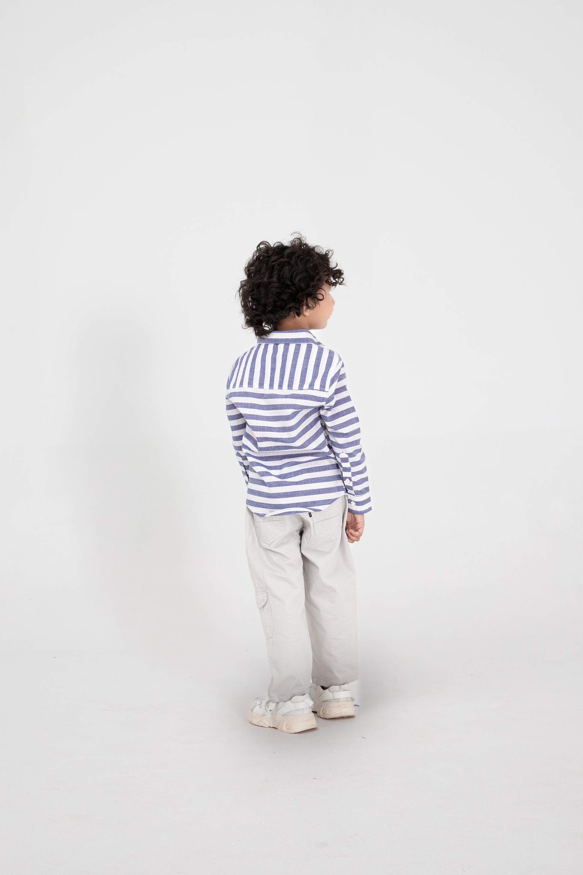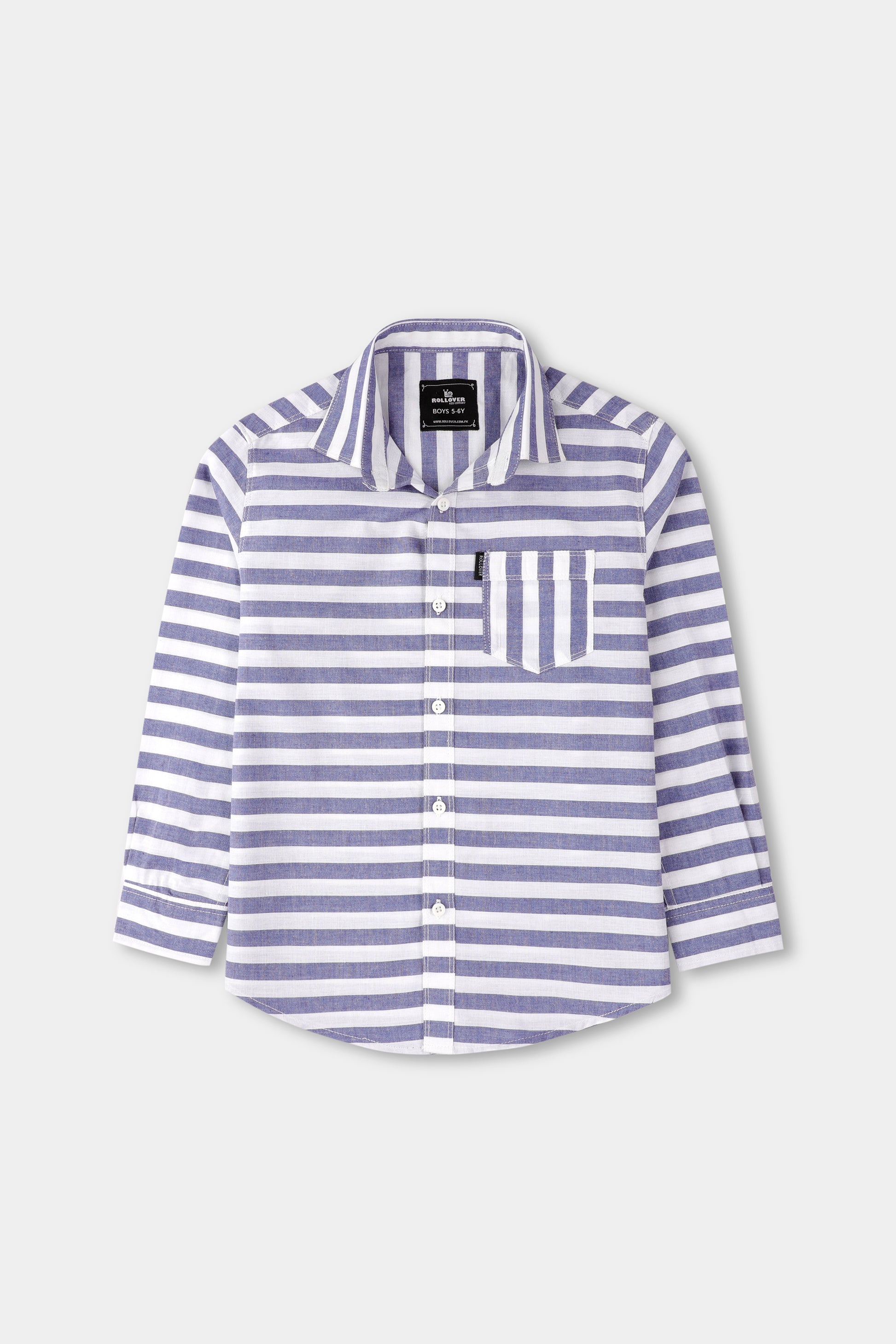 Bring nautical charm to his wardrobe with the Sailor Stripe Cotton Shirt. This crisp white shirt is accented with bold blue horizontal stripes for a smart yet playful look. Made from breathable cotton, it features a classic collar, button-down front, and a patch pocket with vertical contrast stripes for added style.