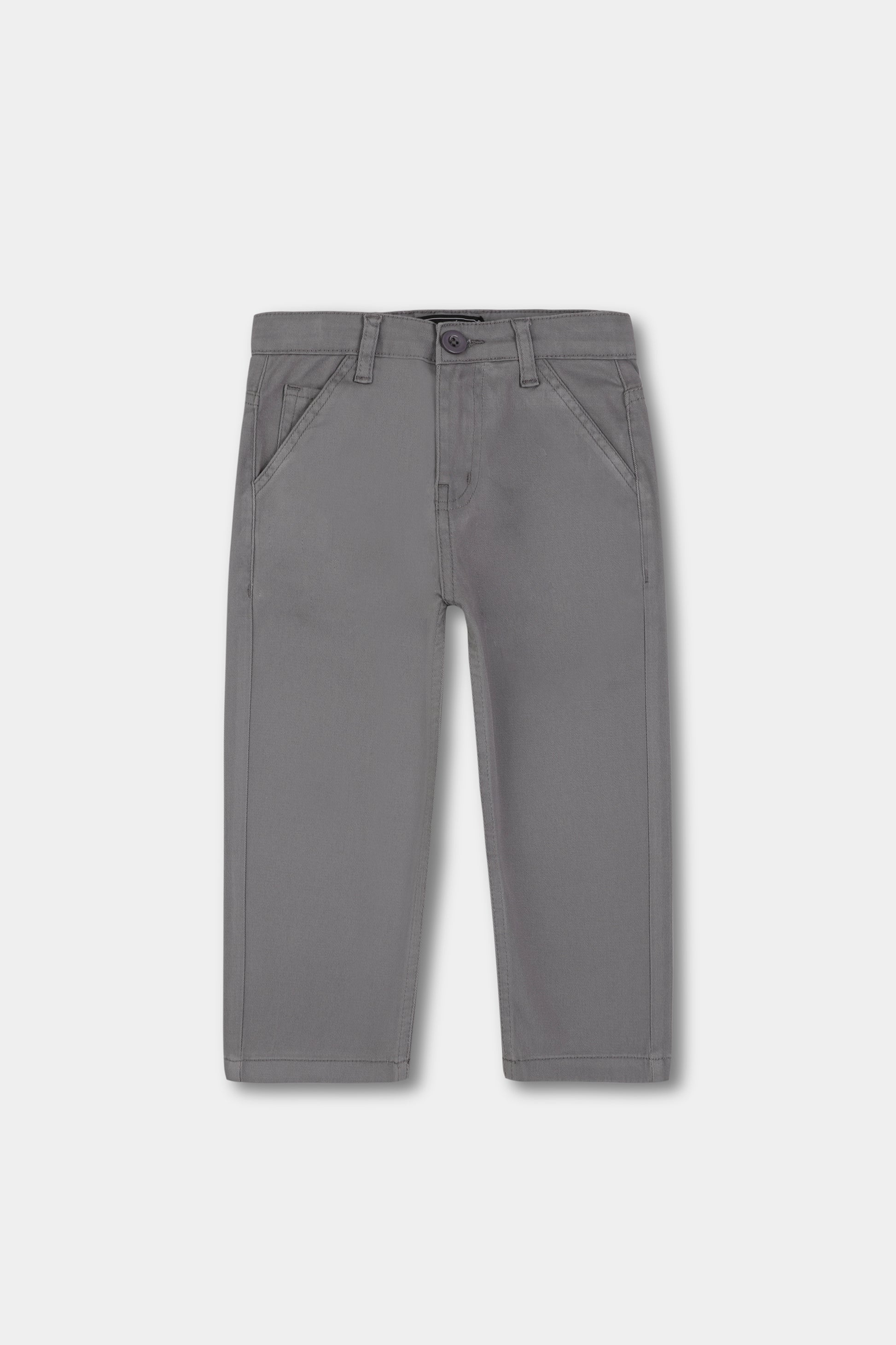 Built for movement and modern style, these grey twill pants feature a straight-leg fit with neat stitched detailing. The button closure, belt loops, and slanted front pockets make them a wardrobe staple for boys who want both function and fashion in one.