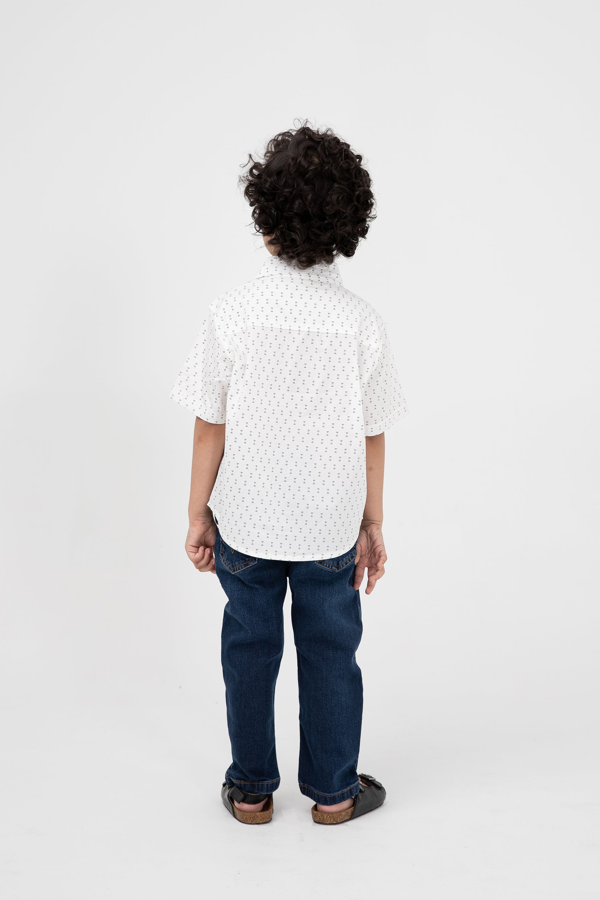The White Crisp Shirt brings modern simplicity to everyday dressing. Made from soft cotton, it features a neat all-over microprint, short sleeves, and a chest pocket for added function. A sharp spread collar and curved hem complete the look, making it ideal for casual wear or semi-formal settings.