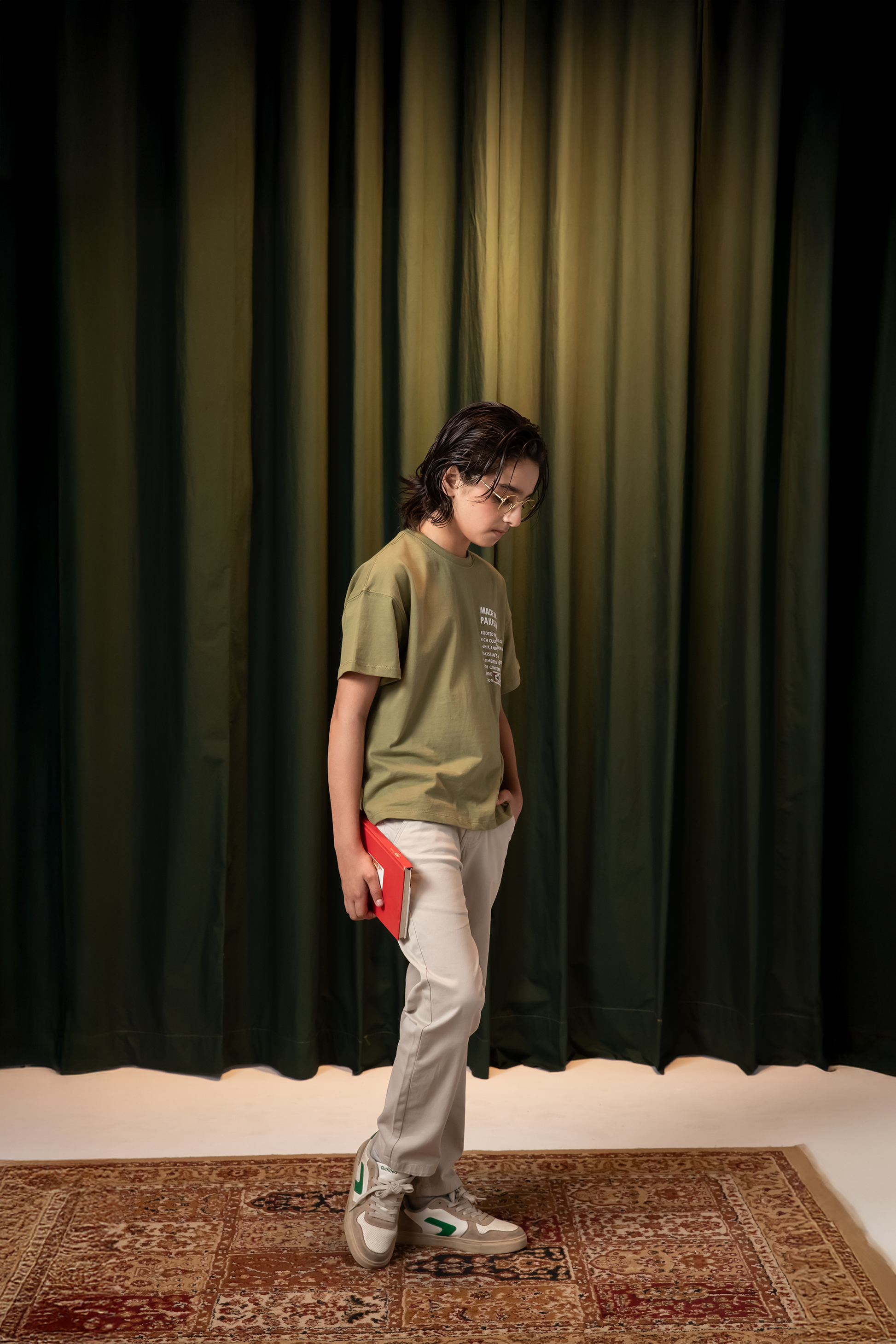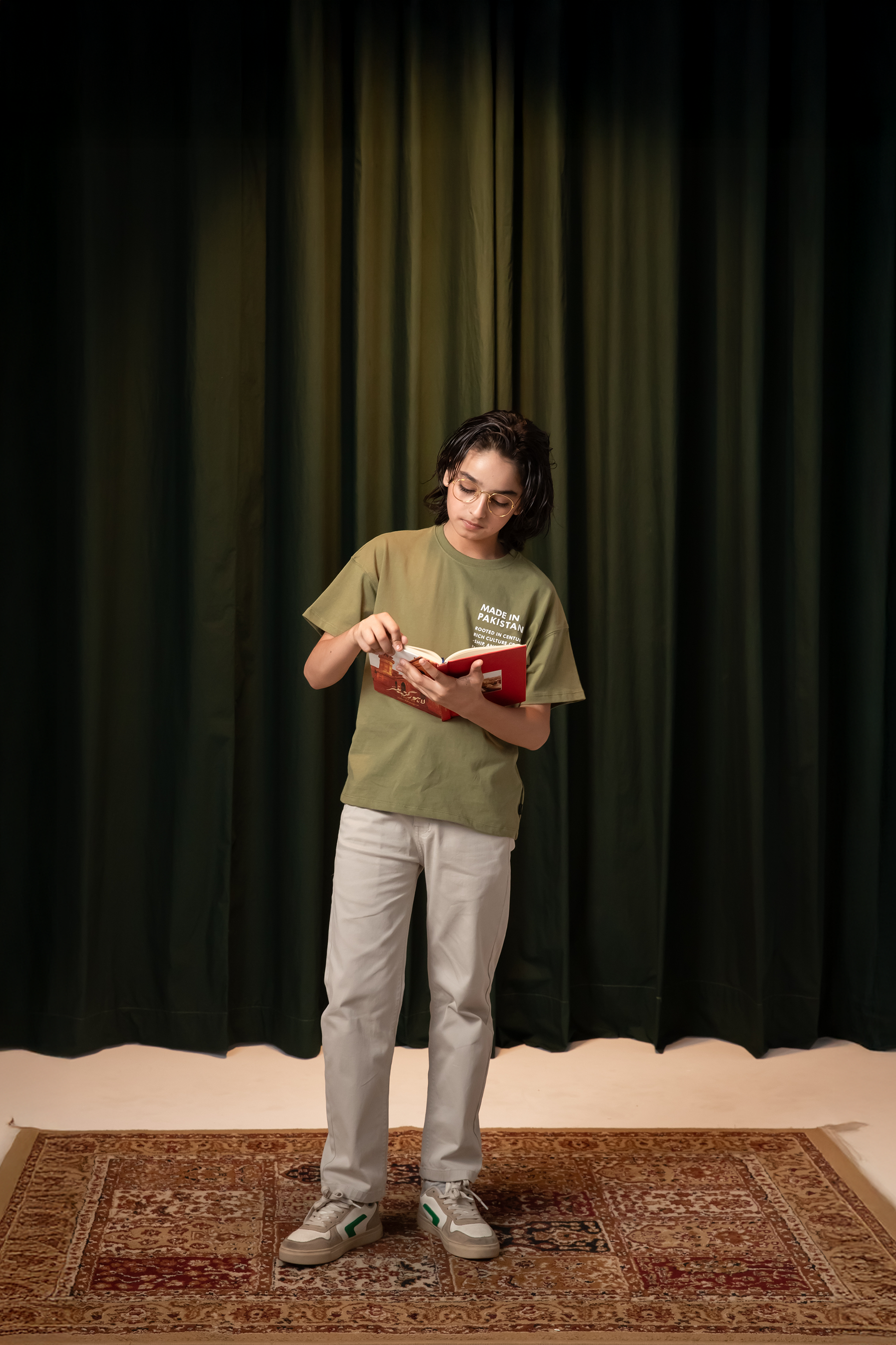 Celebrate culture and craftsmanship with this “Made in Pakistan” tee. Crafted from soft cotton knits, it blends national pride with modern flair. The detailed print honors rich traditions, making it a perfect Independence Day piece. Comfortable and meaningful, making it ideal for boys to wear with purpose and pride.