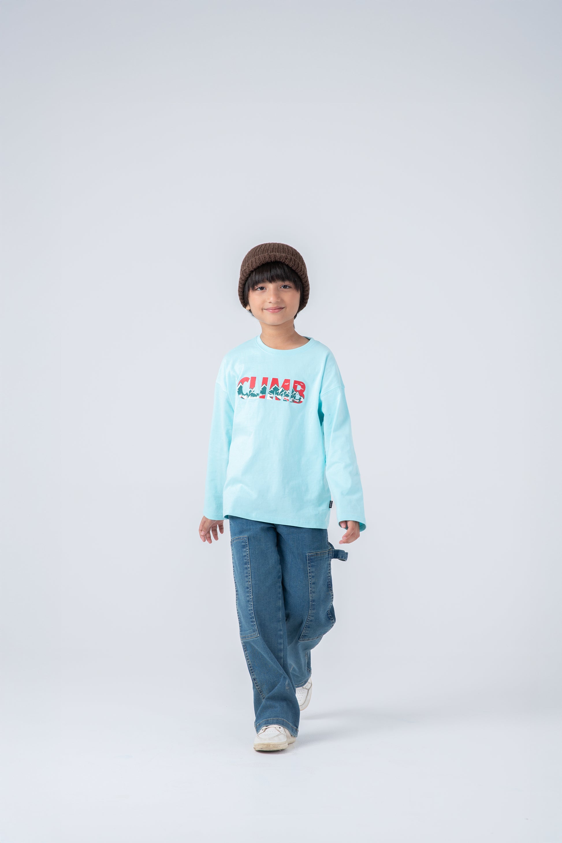 Explore in style with this mint blue tee designed for movement and comfort. Made from premium heavy jersey, it features a drop-shoulder cut and a relaxed fit. The bold “CLIMB” mountain graphic adds an adventurous touch. Perfect for active days, this tee keeps him cool and confident wherever he goes.