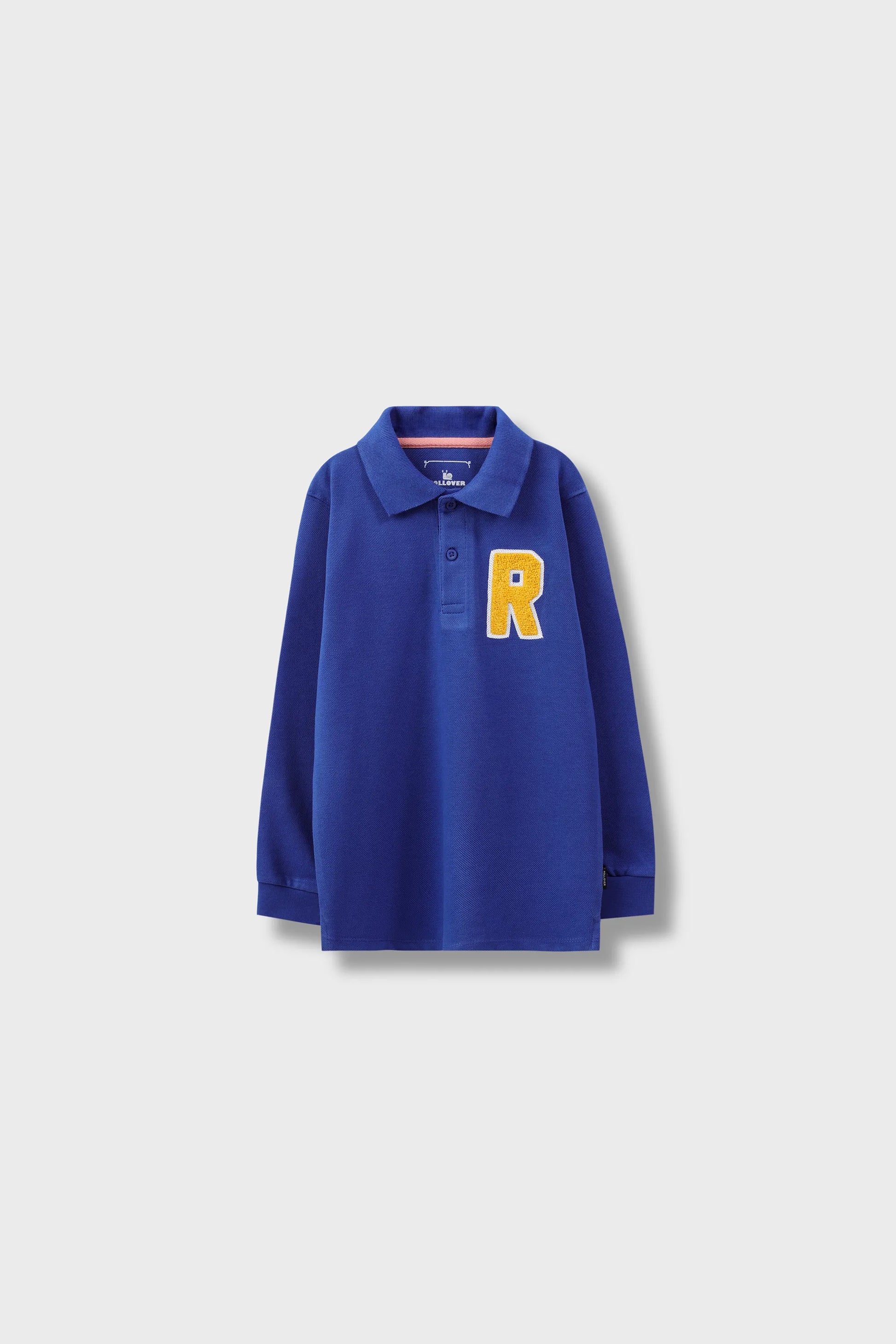 A bold blend of style and texture, this royal blue pique polo stands out with a soft towel-embroidered “R” patch. The structured collar and ribbed cuffs add polish, while the breathable fabric ensures comfort. A perfect pick for boys who love classic silhouettes with sporty flair.