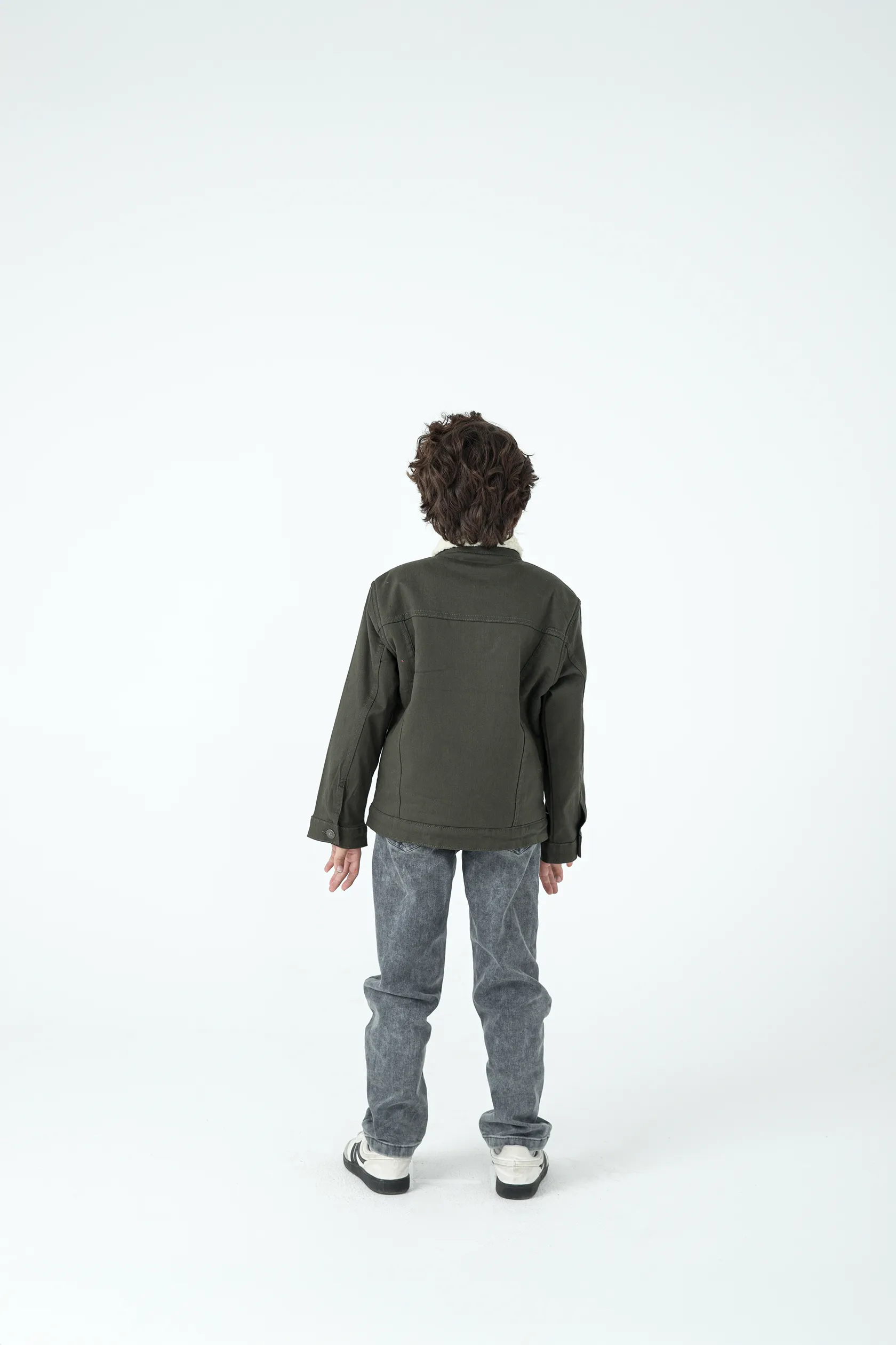 Built for cool adventures, the Olive Trail Coat features rugged twill fabric and a cozy sherpa collar and inner lining for added warmth. Buttoned closure ensures a secure fit while front flap pockets hold his essentials. The dark olive hue adds bold style to this winter-ready jacket. Functional, fashionable, and full of attitude.