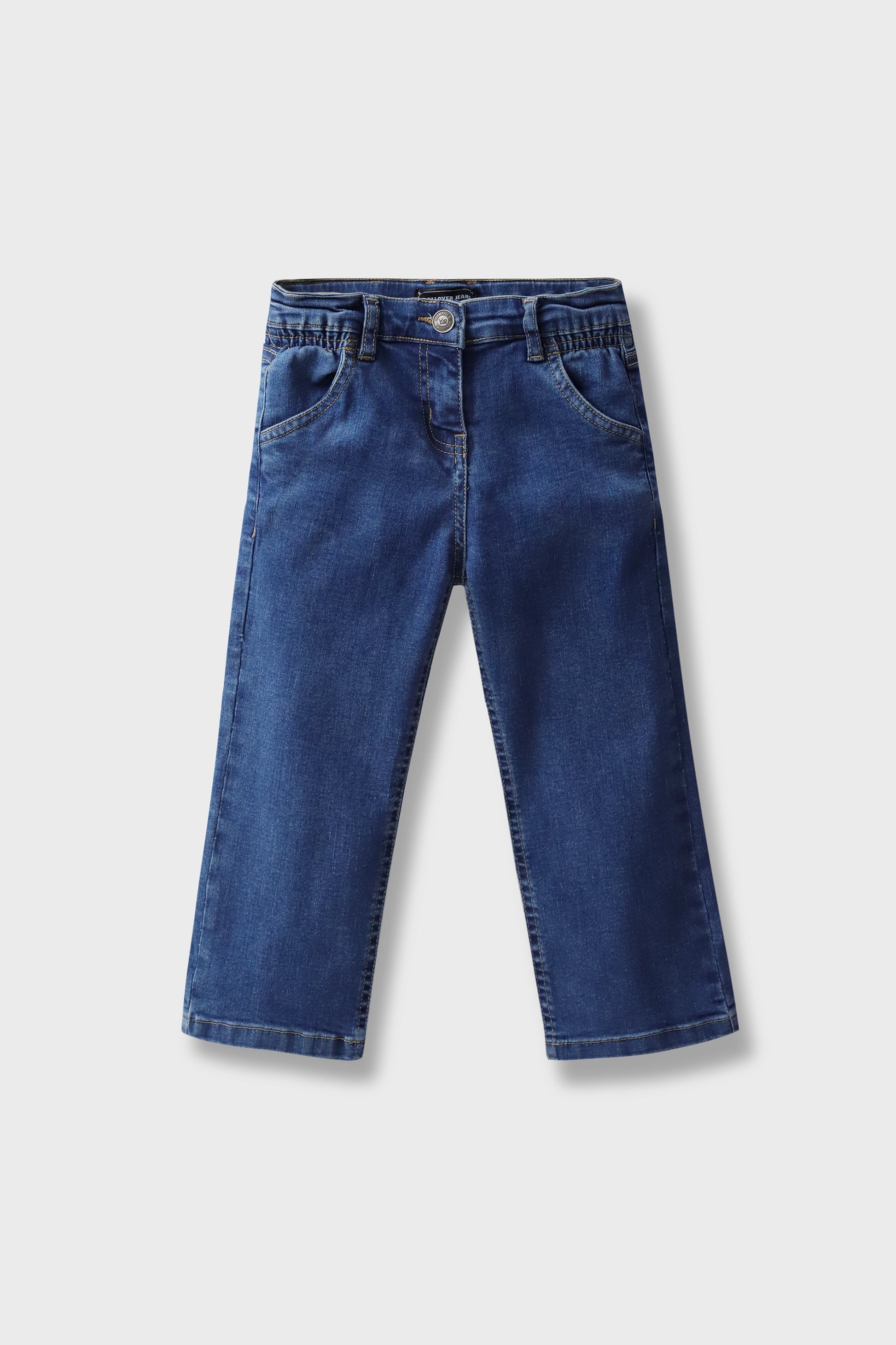 Crafted from durable blue denim, these jeans offer a slim straight fit with classic golden topstitching. Designed with side and back pockets, belt loops, and a secure waistband, they are ideal for daily wear. Perfect for pairing with tees or tunics, they blend style with function effortlessly.