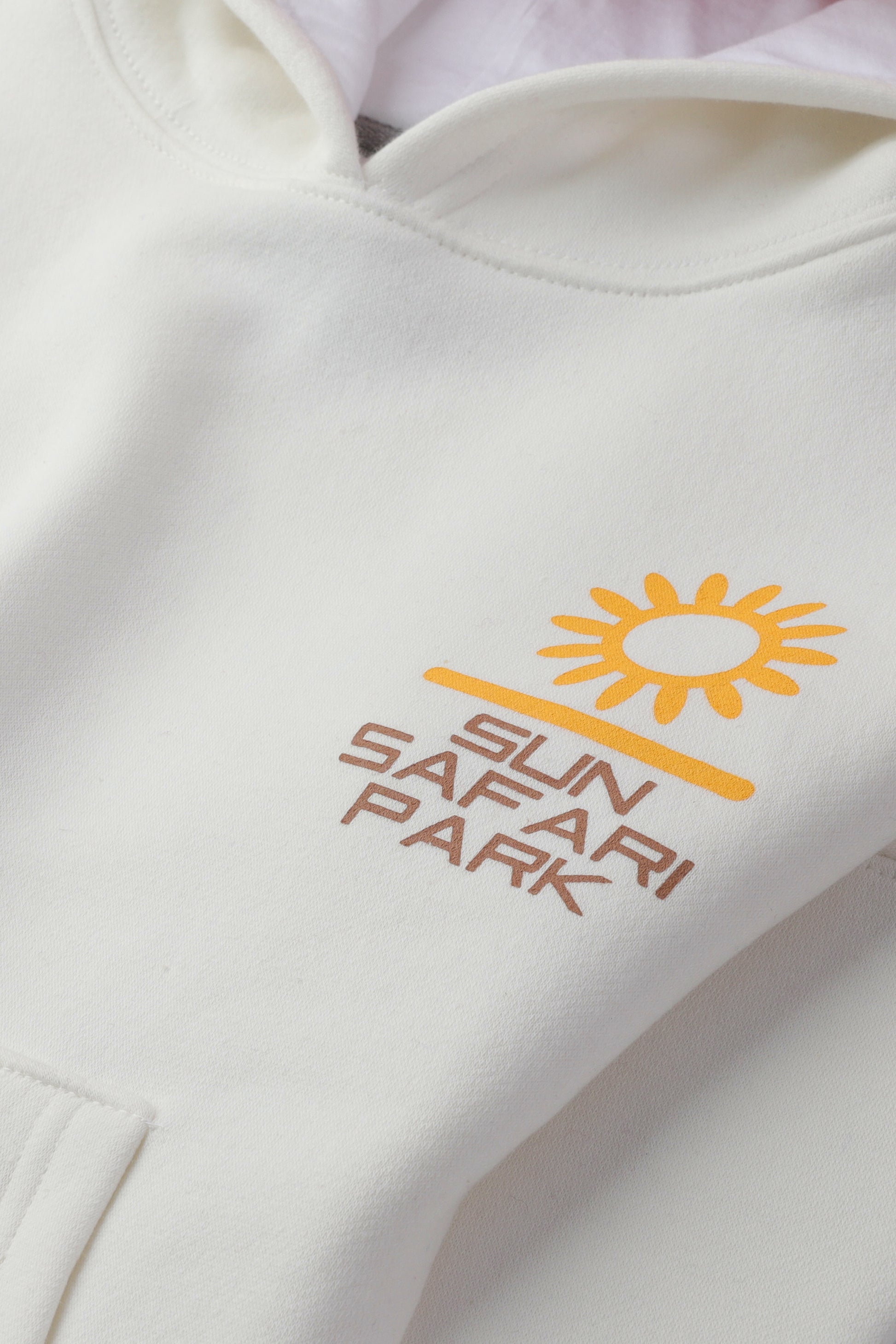 Let her bask in cozy vibes with this white fleece hoodie. The charming chest graphic adds a playful touch, while the front kangaroo pocket is perfect for keeping little treasures safe. Designed with ribbed cuffs and hem, this hoodie is a delightful addition to her everyday wardrobe.