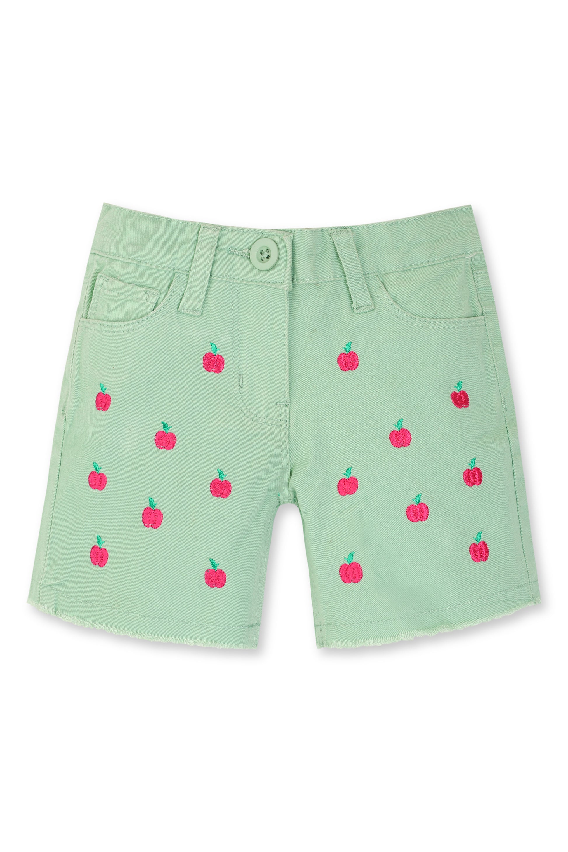 The Mint Orchard Embroidered Shorts are both fun and fashionable! Featuring bright apple embroidery, a structured fit, and classic five-pocket styling, these shorts provide comfort and durability. The soft mint twill fabric ensures a breezy feel, making them a go-to choice for warm days and stylish outings.