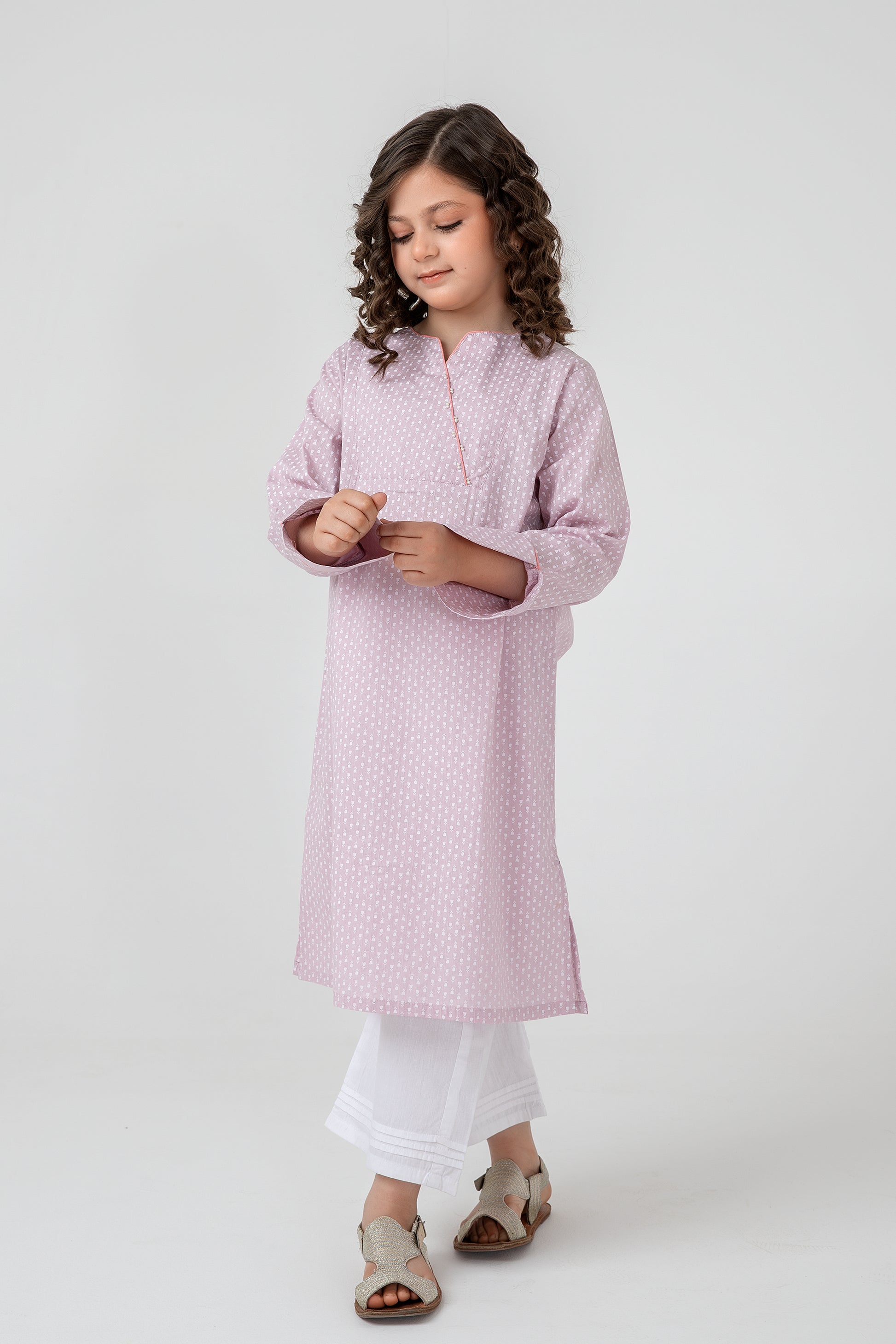 Let your little one shine in this elegant pink cotton kurta, paired with crisp white pleated trousers. Designed for comfort and style, the kurta features delicate prints and subtle pearl details, making it a perfect choice for festive gatherings, casual outings, or traditional occasions.