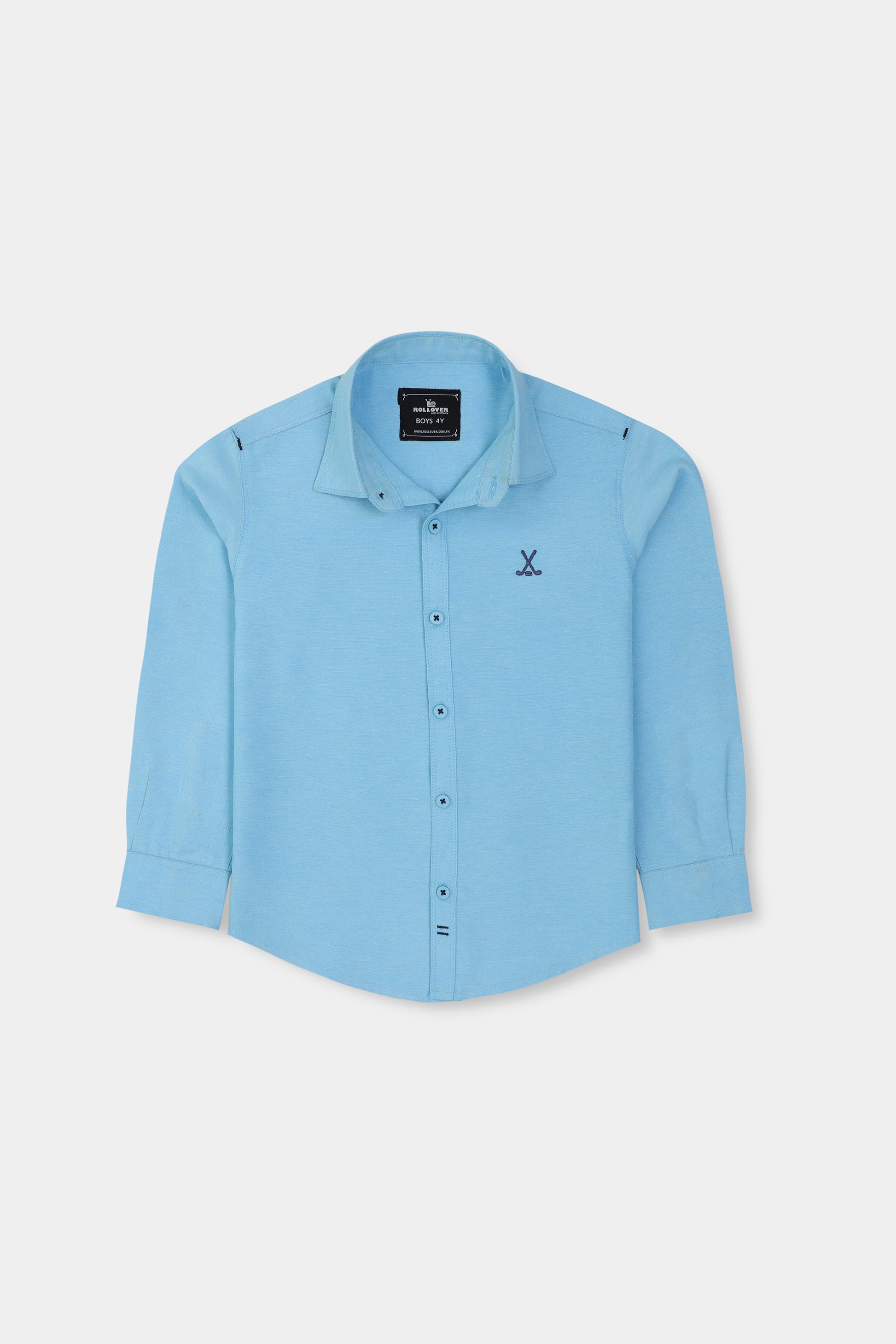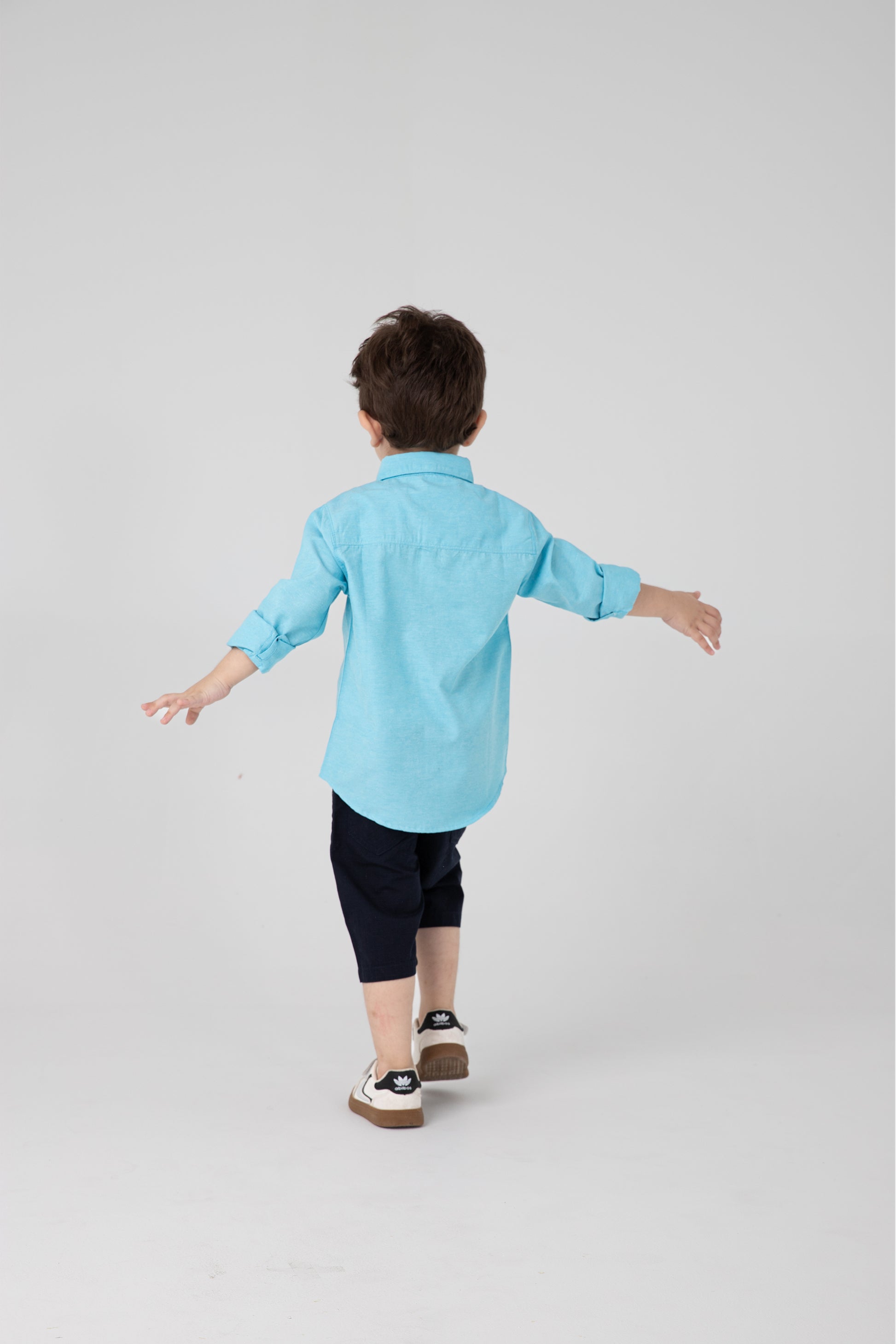 Upgrade your boy’s formal collection with this chic sky blue chambray shirt. The neatly stitched button-down design, subtle embroidery, and fine chambray texture create a refined look. Whether for a special occasion or a smart-casual day, this shirt ensures all-day ease with a polished finish.