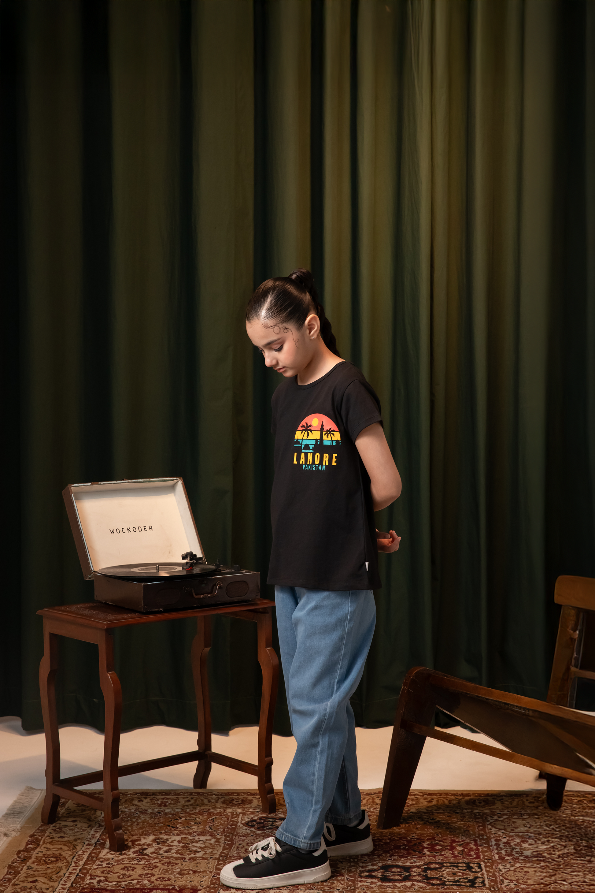 Celebrate Pakistan’s cultural charm with this Independence Day special. Crafted in soft cotton knits, the tee showcases a scenic sunset print featuring Lahore’s iconic skyline. Lightweight, breathable, and patriotic, it’s perfect for girls to wear with pride on national days or everyday outings.