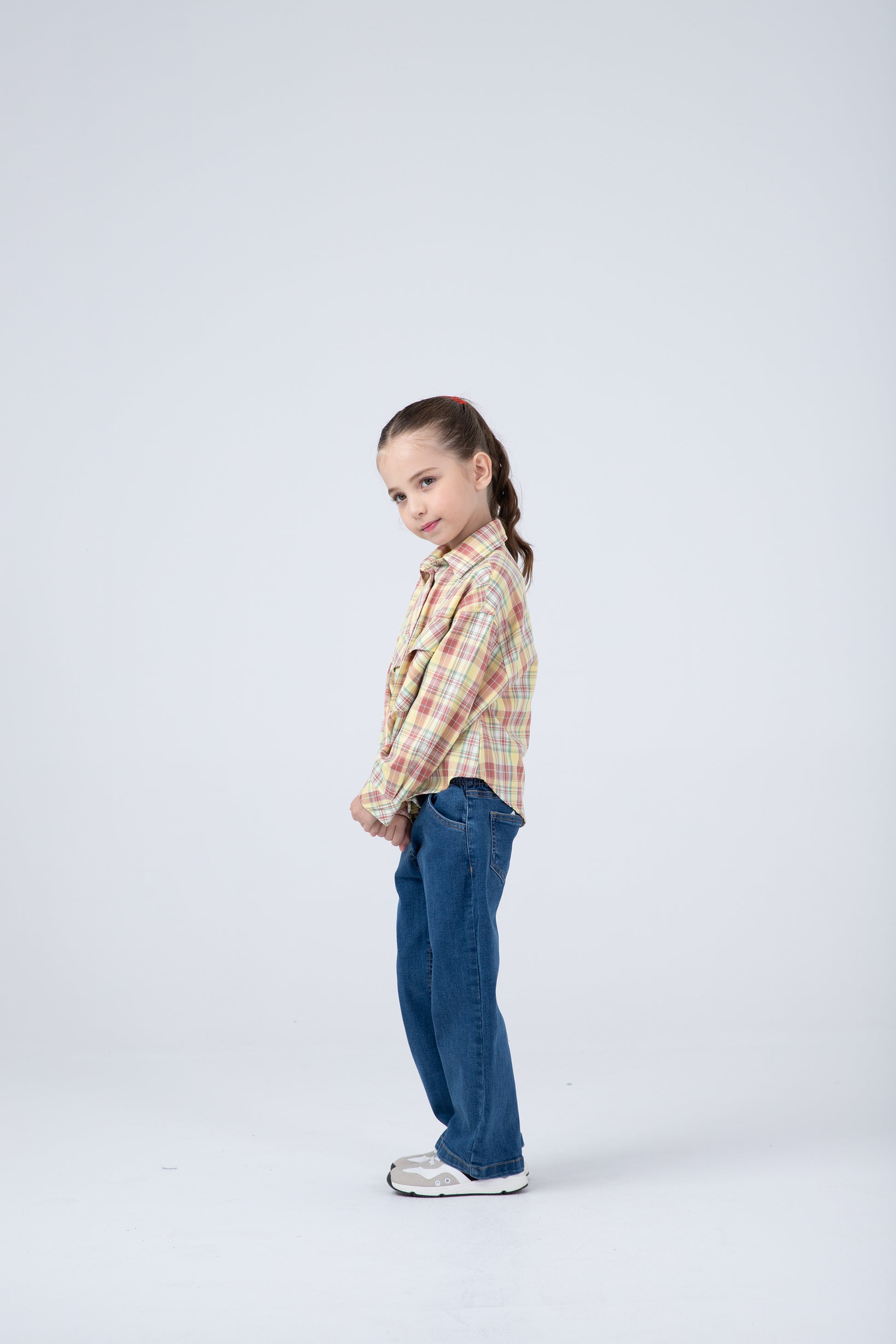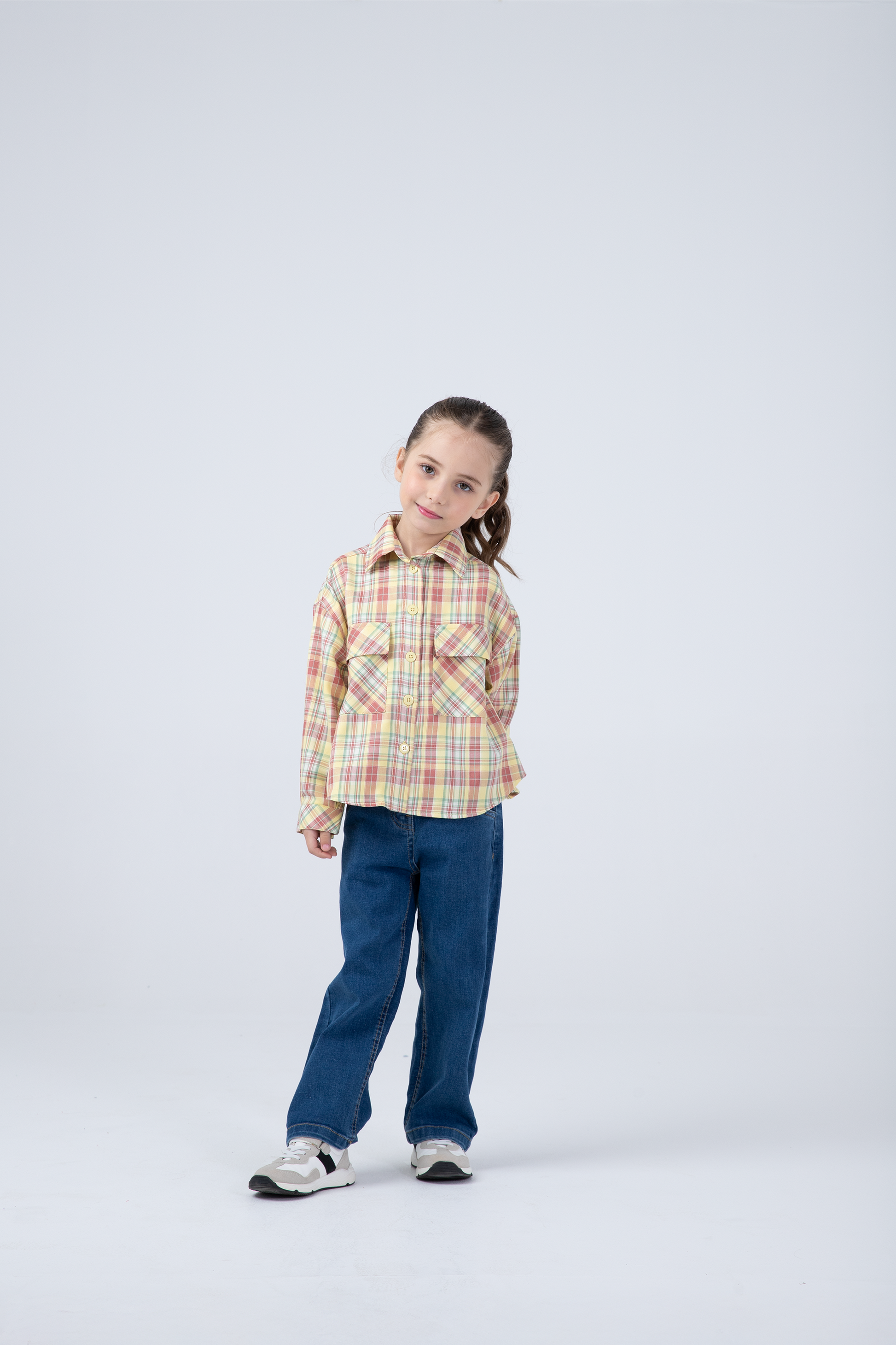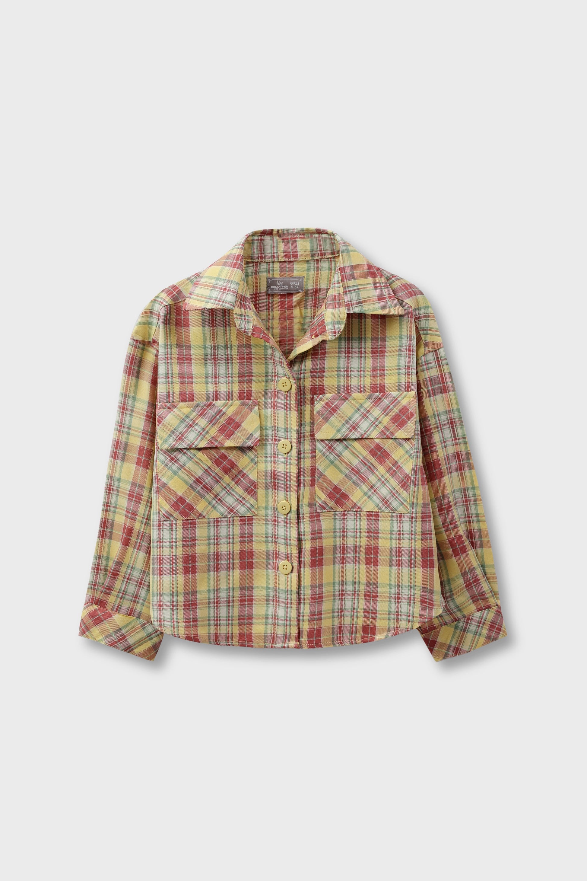 A charming multicolor checked top designed for cheerful little girls. Made from soft breathable cotton, it features full sleeves, buttoned cuffs, and front pockets for extra flair. Its vibrant color palette brings a playful edge to everyday wear—ideal for casual outings or brightening up a school day.