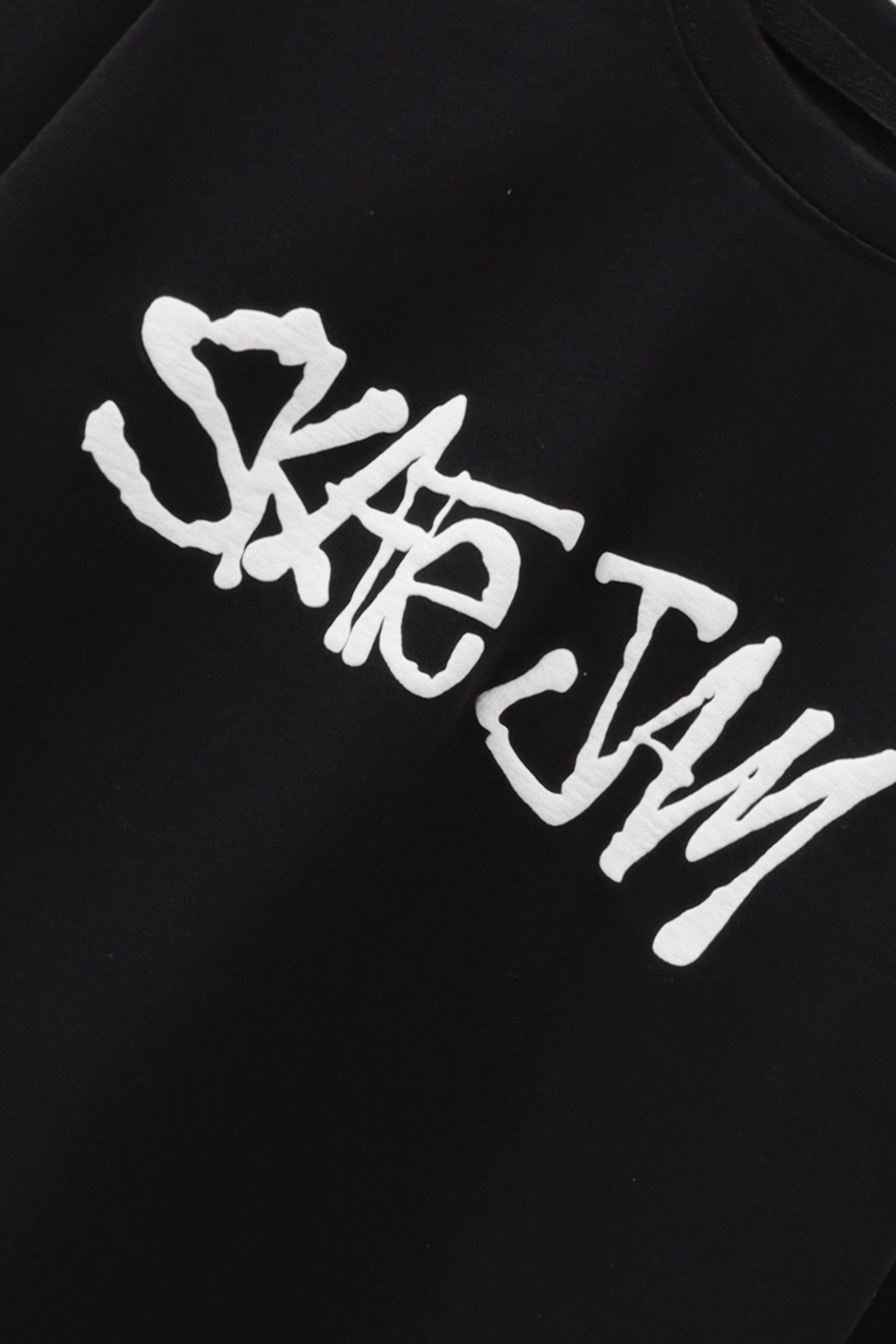 This black “Skate Jam” t-shirt is made for little rebels with big energy. Built from high-quality heavy jersey, it provides all-day comfort without sacrificing durability. The edgy front print adds a splash of attitude to their everyday wardrobe. Ideal for layering or standing out solo.
