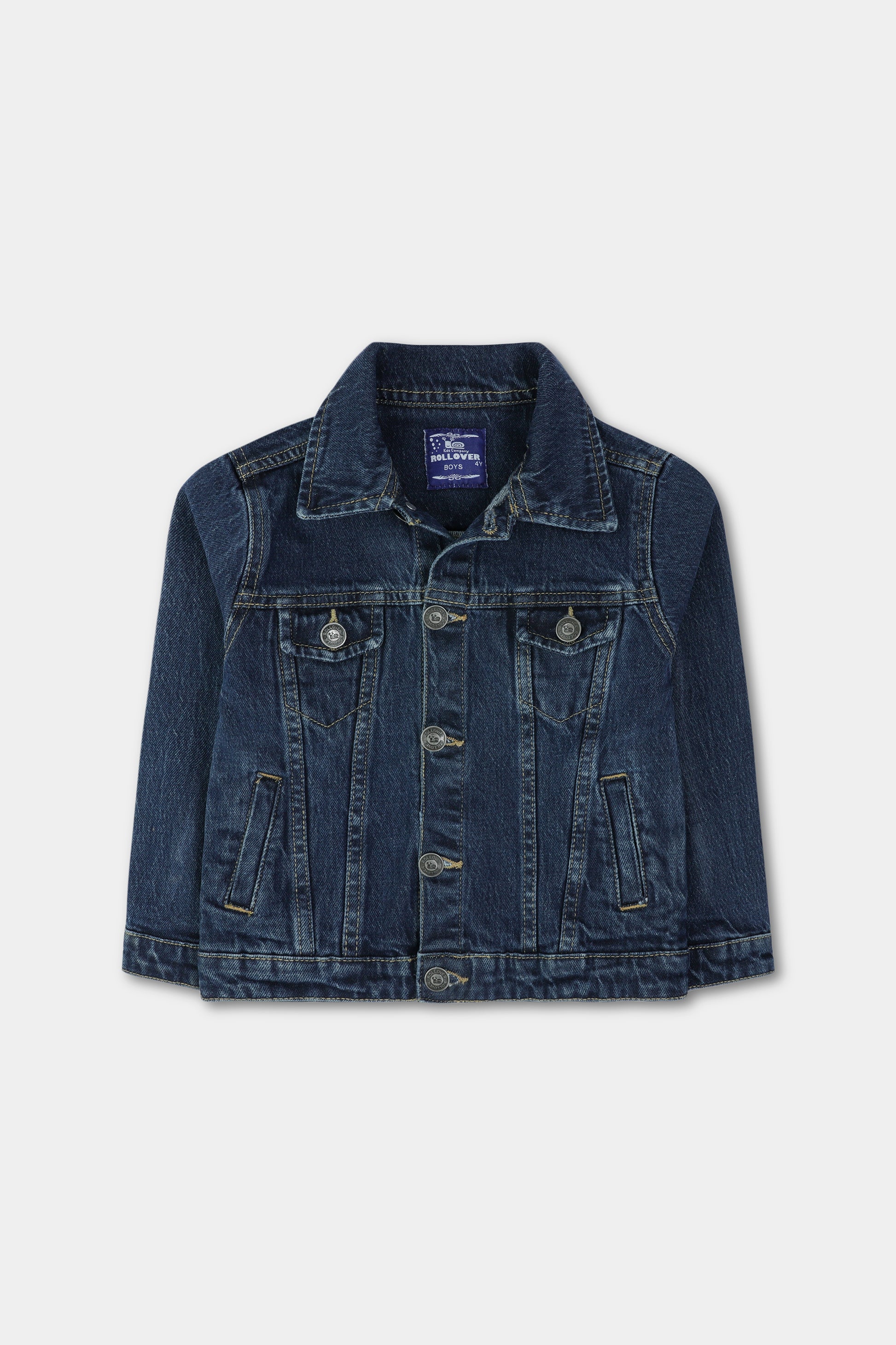 Elevate his style with this dark blue wash denim jacket, inspired by the iconic LEVI's design. Featuring a structured collar, button-down closure, and chest flap pockets, this jacket combines rugged charm with timeless appeal. Its durable fabric ensures all-day comfort, making it a versatile wardrobe essential for any young trendsetter.