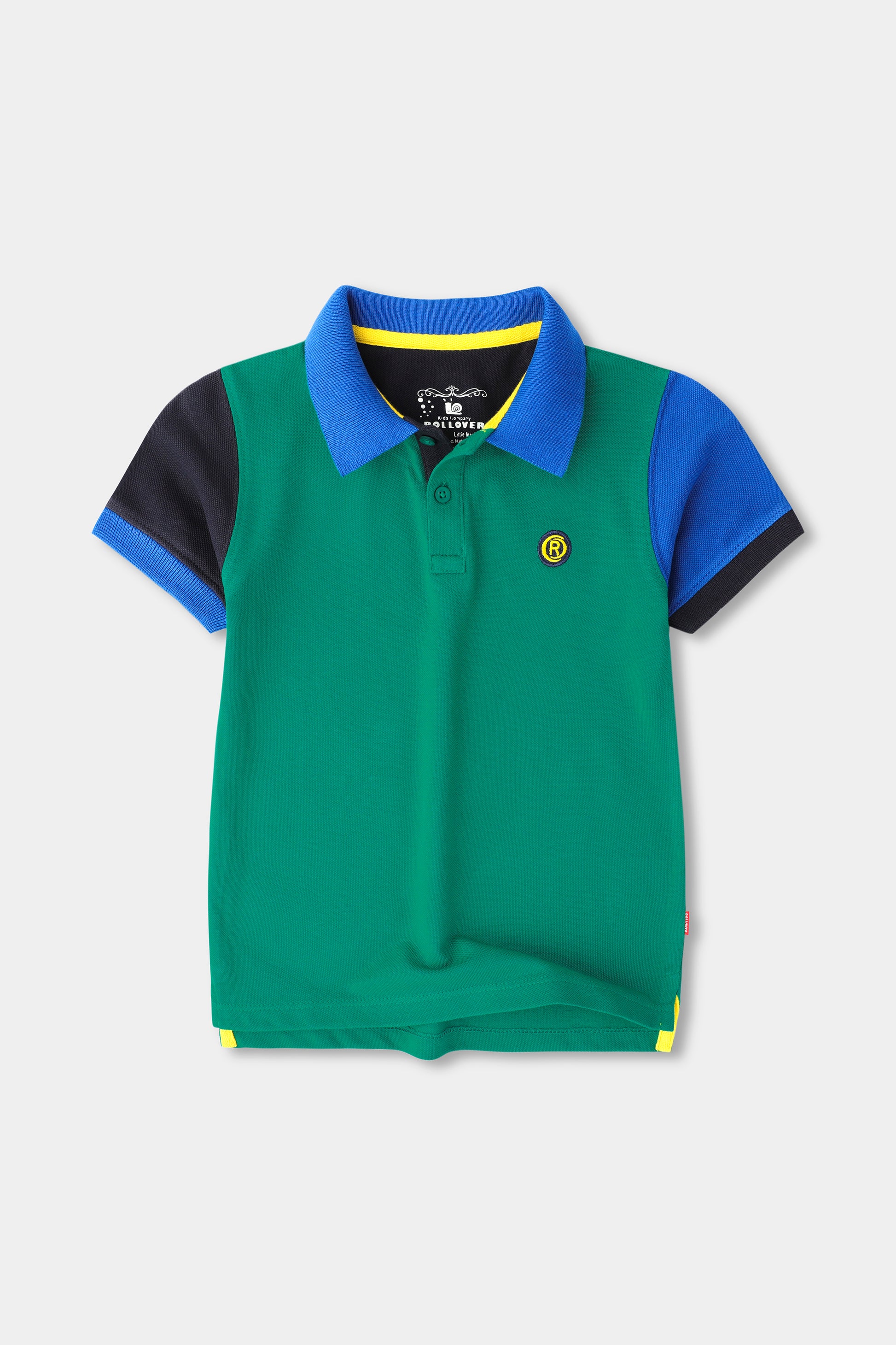 Elevate his style with this green pique polo for boys! The half sleeves and whimsical rollover logo at the front add a touch of fun, perfect for daydreaming and playful explorations.