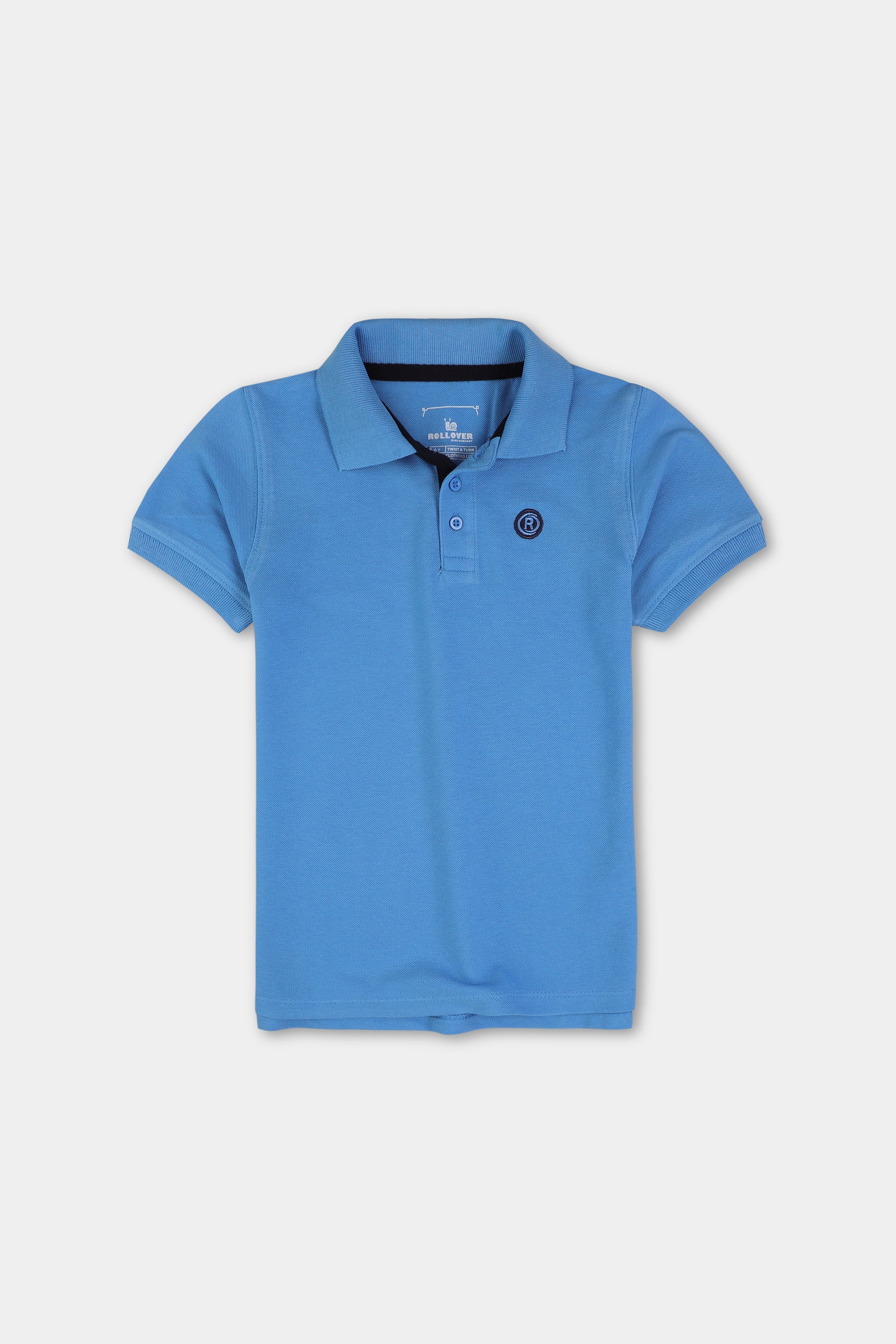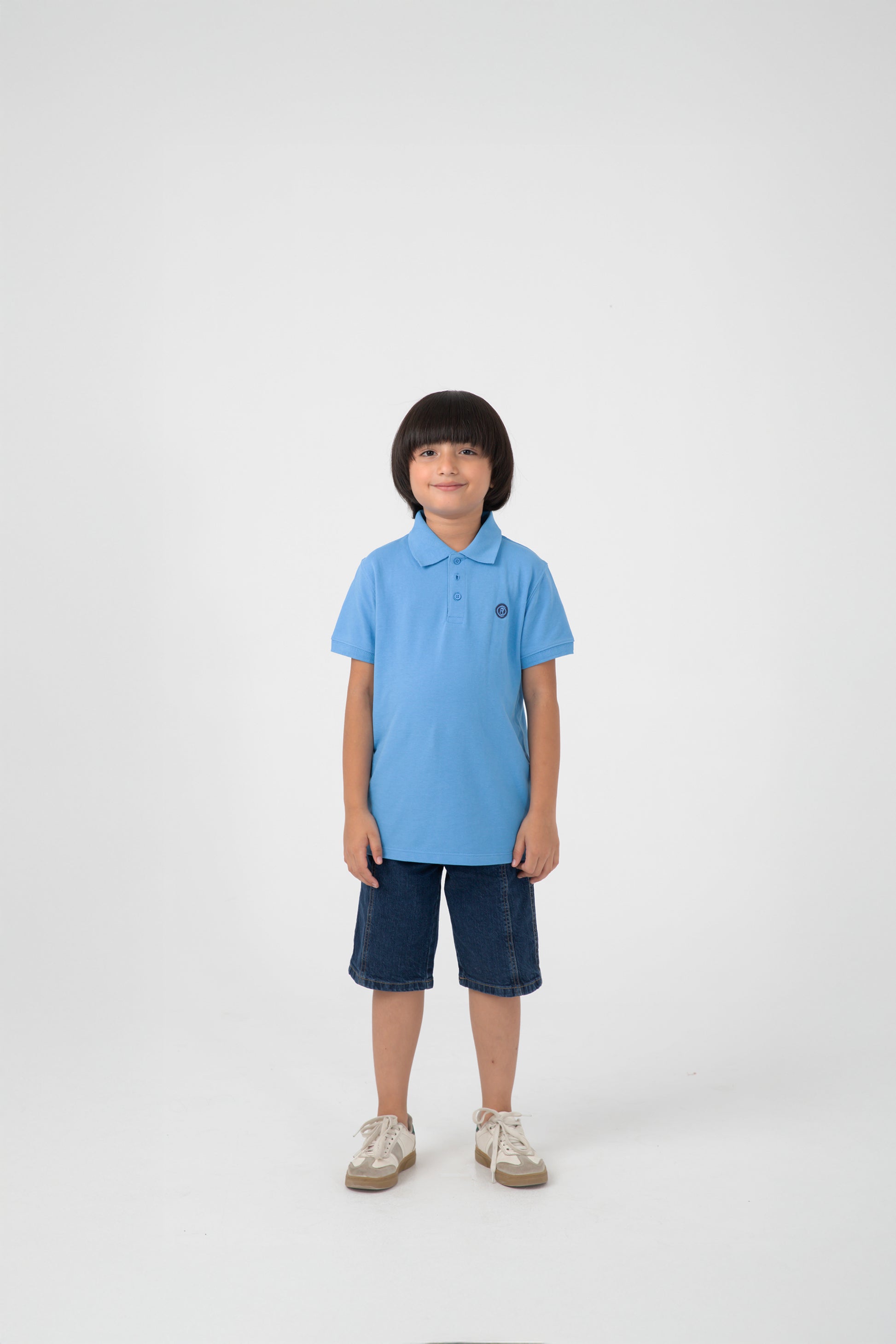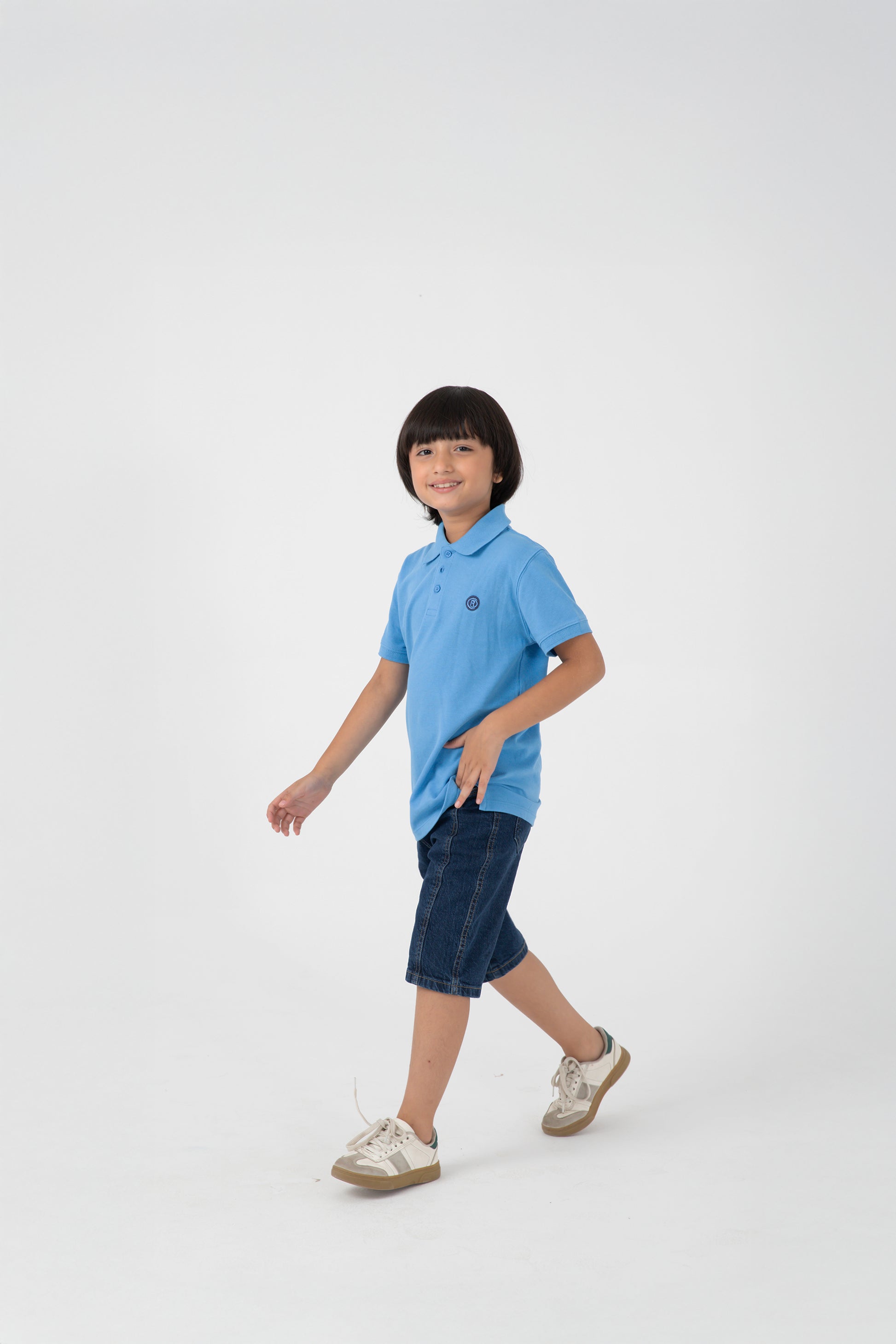 A sharp and stylish essential, this boys' polo shirt in vibrant sky blue is crafted from breathable pique fabric. Featuring a classic ribbed collar, a two-button placket, and a tonal embroidered badge on the chest, it's a polished pick for both play and casual days out.