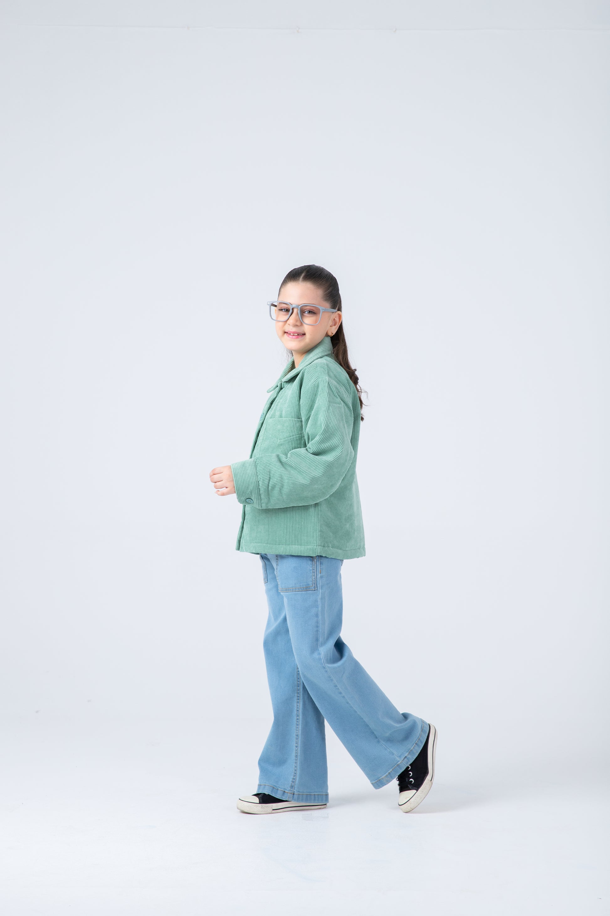 Soft corduroy meets fresh mint vibes in this playful piece. Featuring a classic collar, folded placket with mint buttons, and sharp-edged patch pockets with V-shaped topstitching, it's both crisp and creative. Finished with buttoned cuffs and side slits for comfort, this jacket is made for bright days and cool moods.
