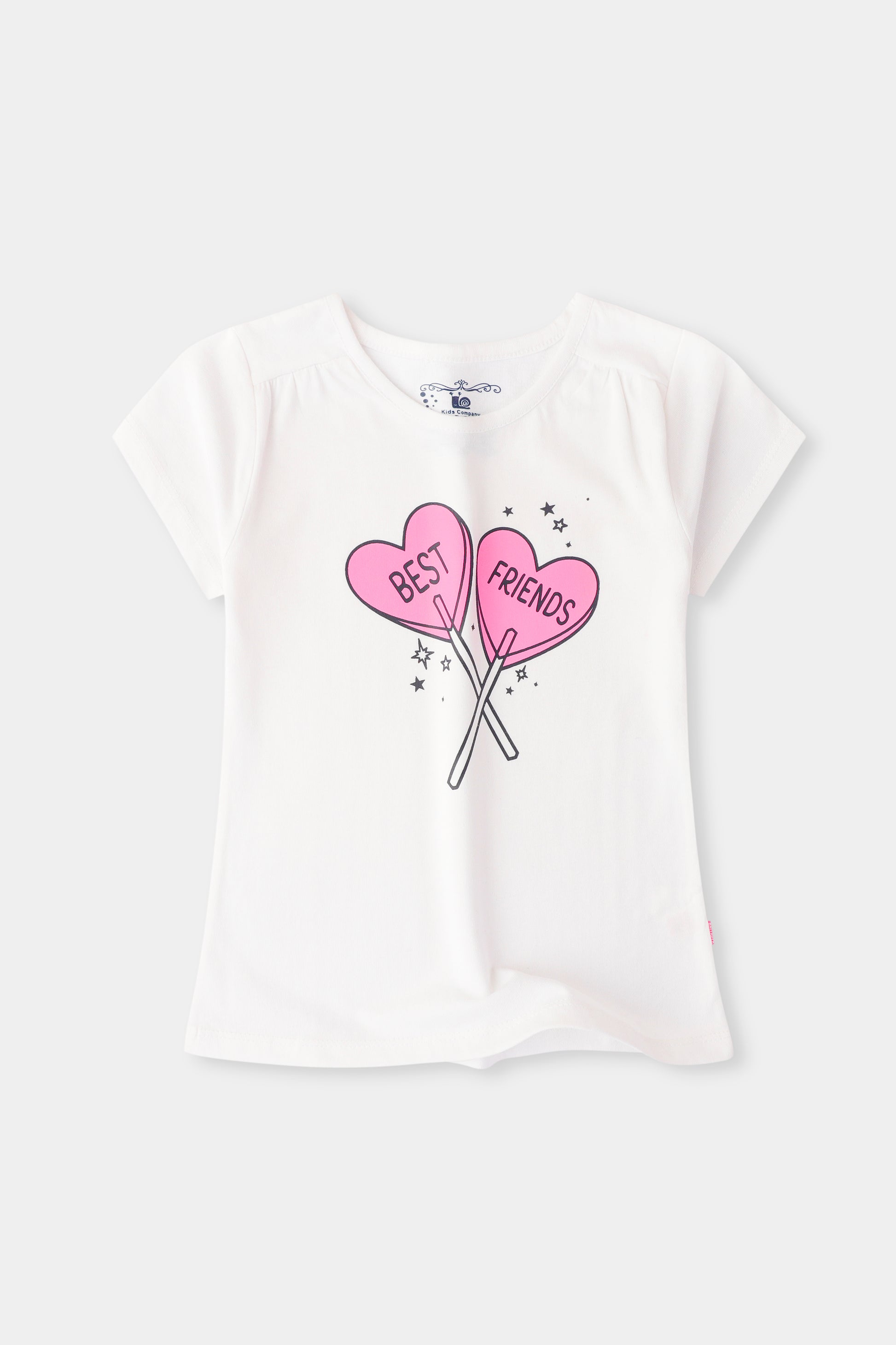 This girls' white jersey t-shirt celebrates friendship with a sugary twist—two illustrated pink heart lollipops marked “Best” and “Friends.” Finished with tiny sparkle prints around the graphic, it’s the perfect tee for sweet summer days and bestie selfies.