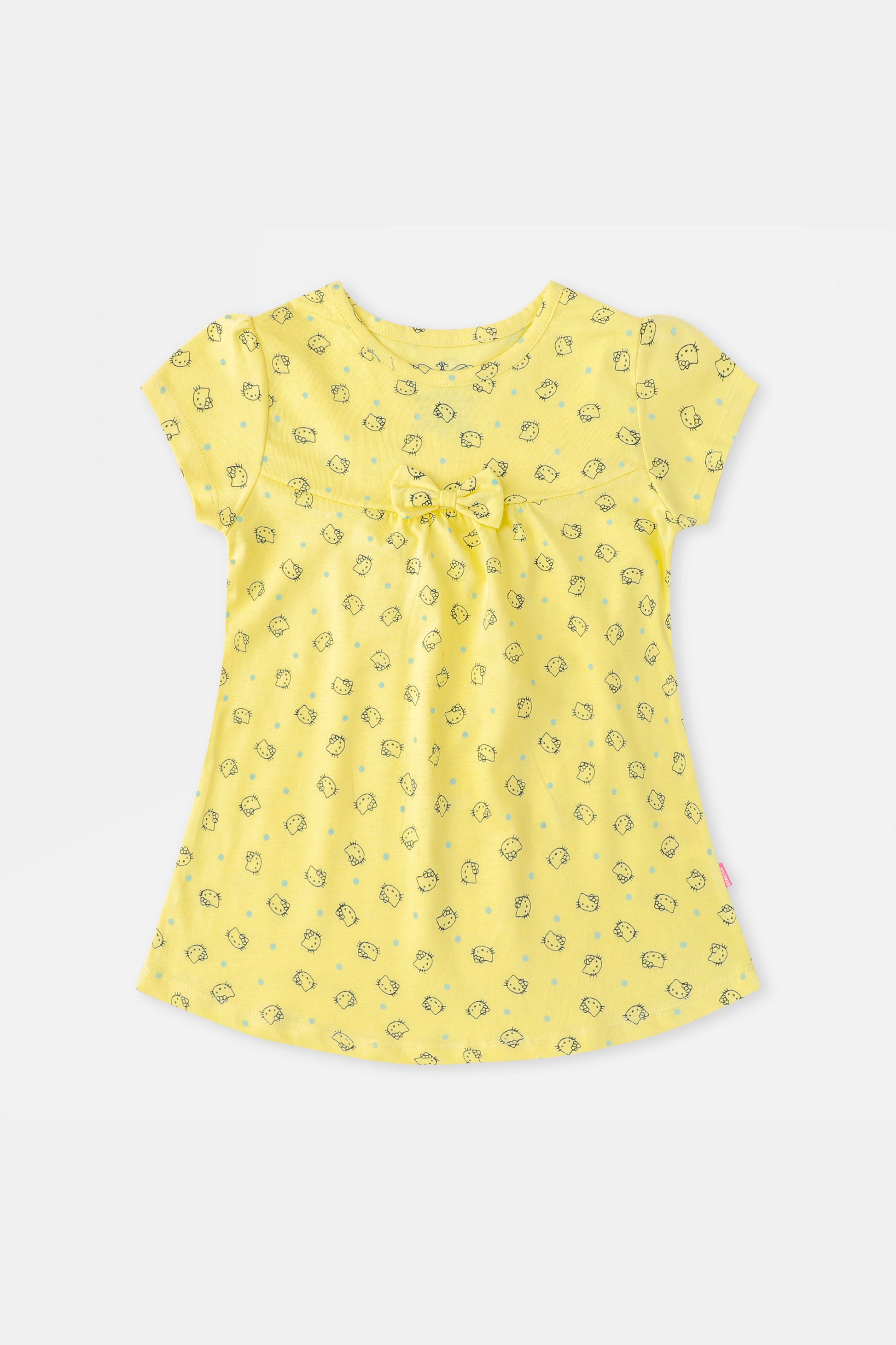Let her glow in the Yellow Kitty Bow Top, featuring a playful cartoon print and soft jersey fabric in vibrant yellow. The cute bow detail at the front adds extra charm, while the relaxed fit keeps her comfy all day. Perfect for bright playdates or everyday cheer.