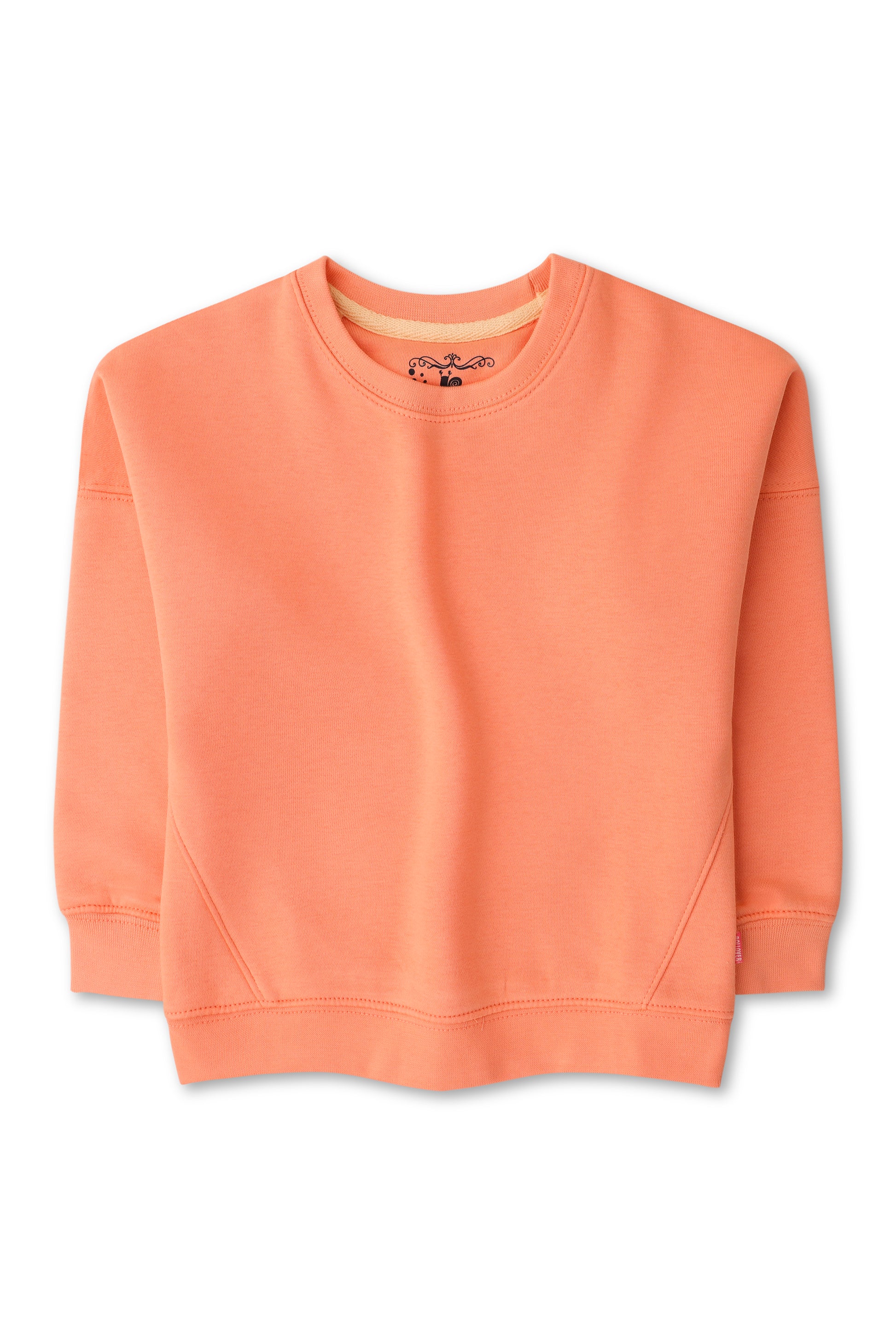 The Girls Peach Fleece Sweatshirt is crafted for all-day comfort and style. Featuring soft fleece fabric, it showcases trendy drop shoulders and matching ribbed cuffs and hem add a sleek finish, making this sweatshirt a versatile go-to for casual outings when paired with any denim pants and chunky sneakers.