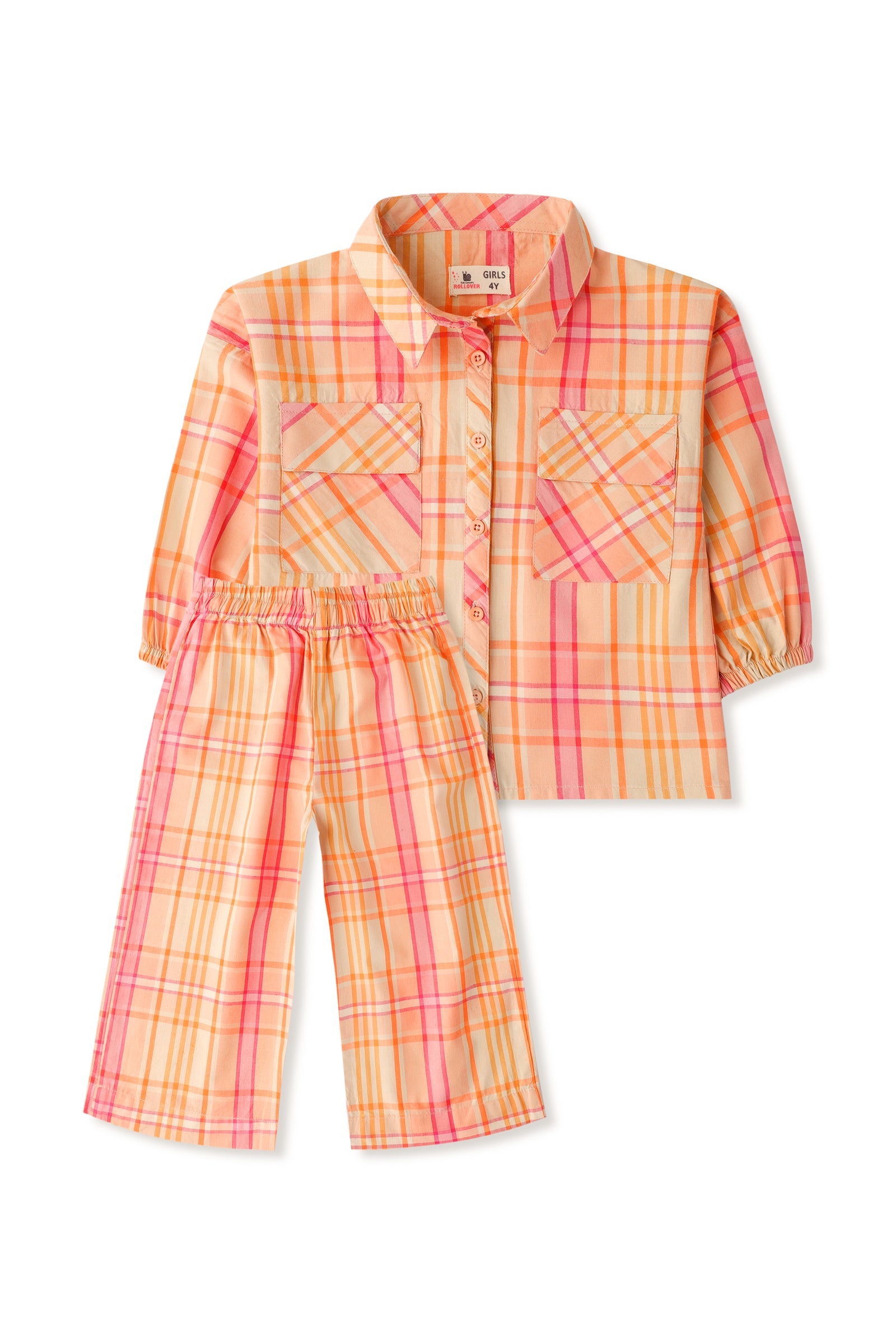 Peach & Pink Checkered Co-ord Set Peach & Pink Checkered Co-ord Set