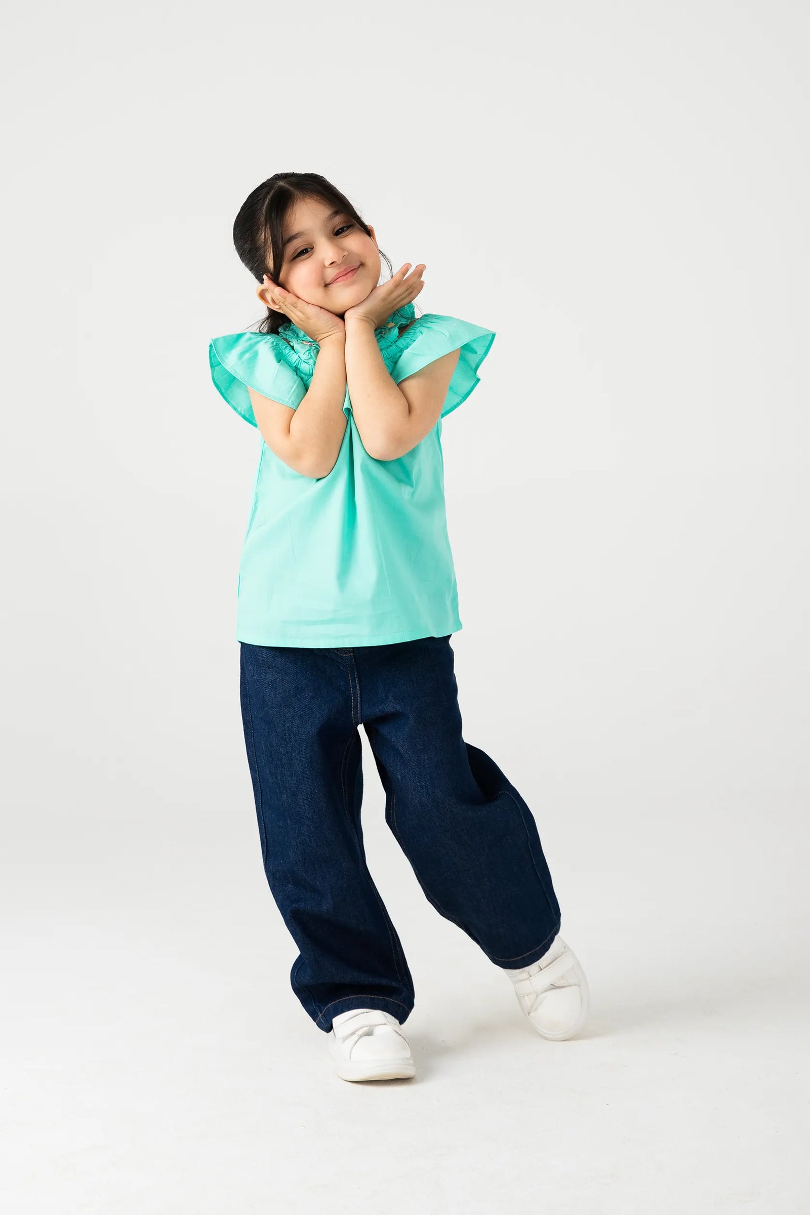 Solid Sea Green Ruffle Top