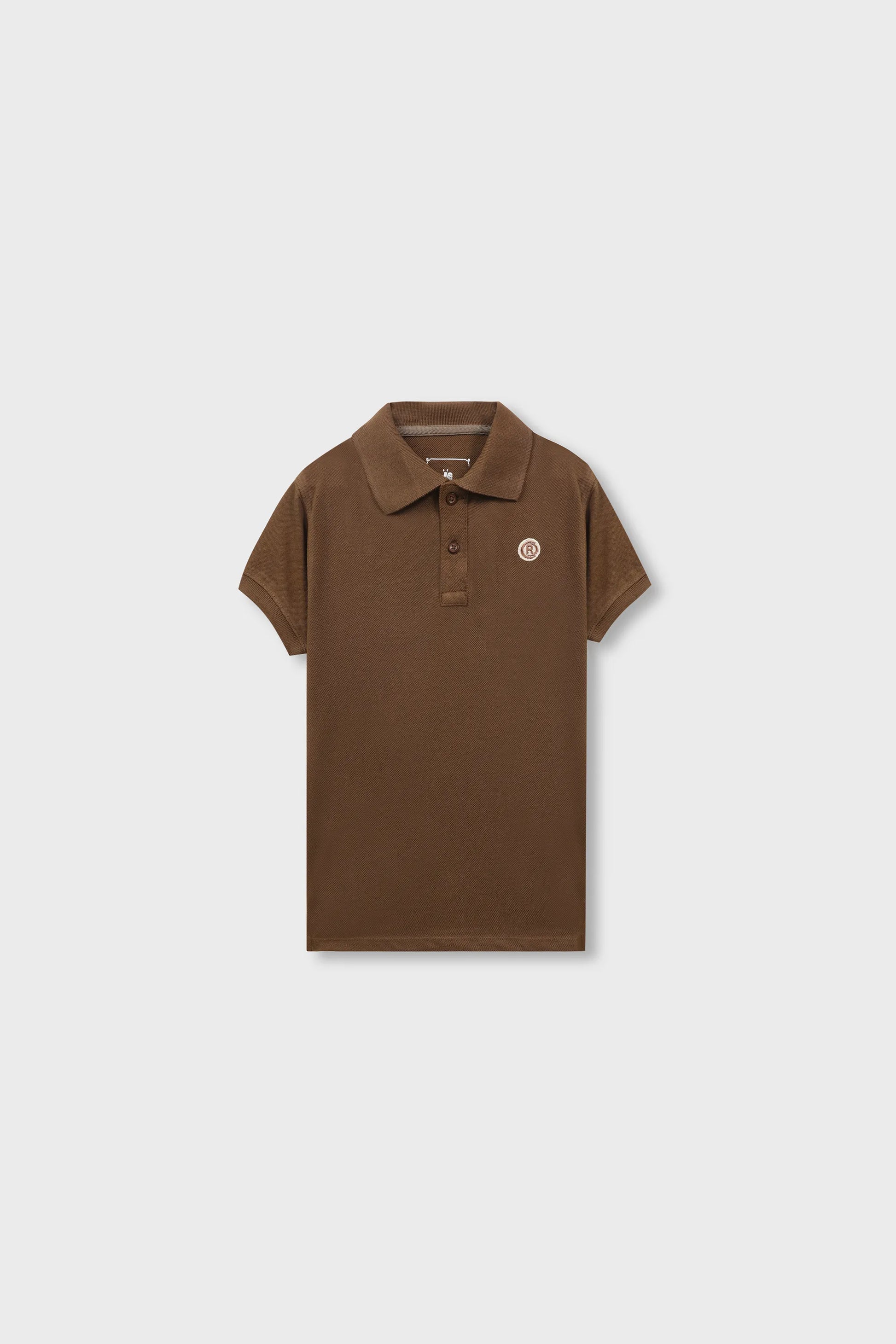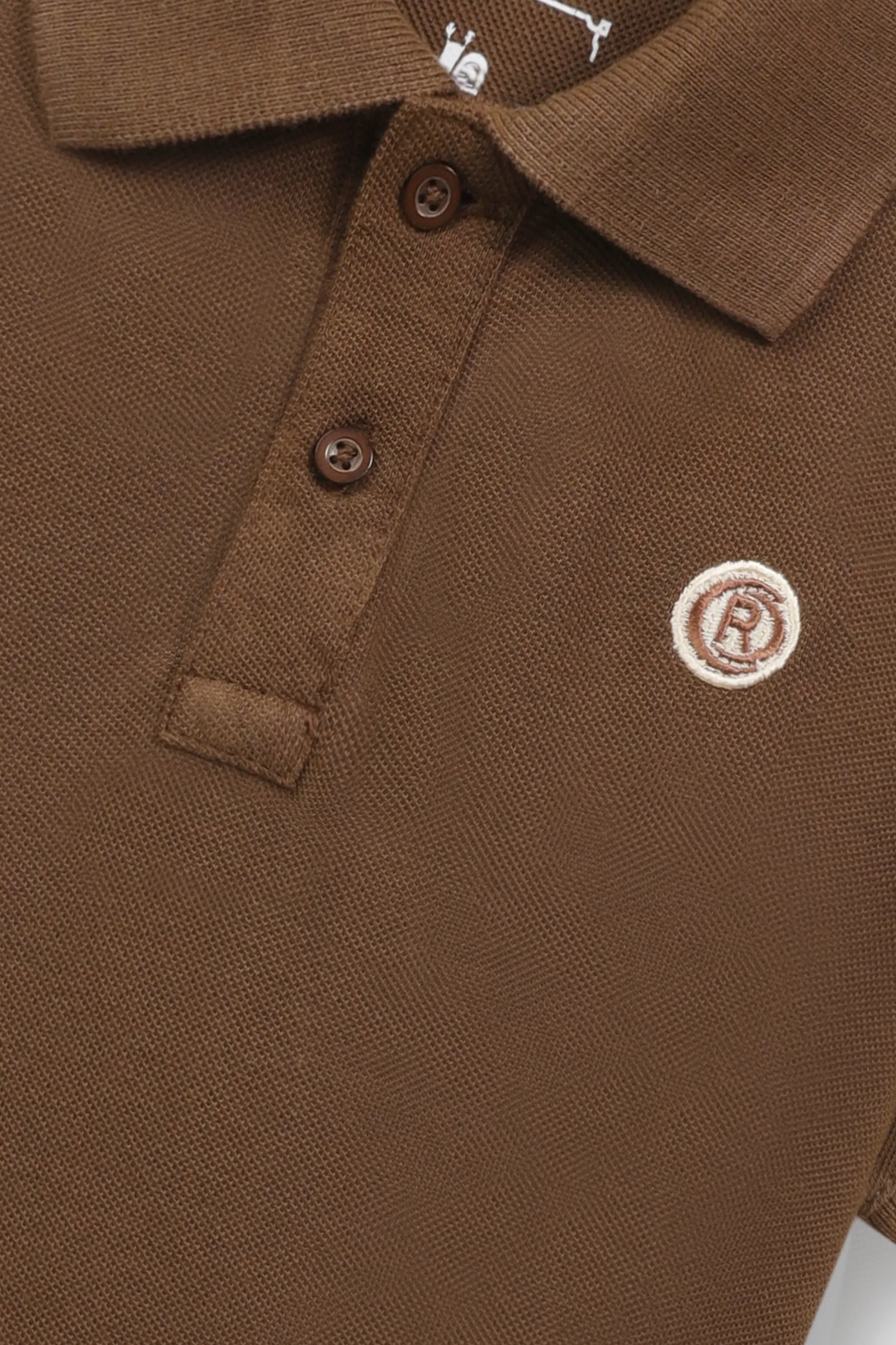 Bring an earthy vibe to your little one's wardrobe with this brown polo. Designed with a ribbed collar, beige embroidery, and matching buttons, it’s a classic style for all occasions. The soft pique fabric and regular fit ensure all-day comfort and movement for your active boy.