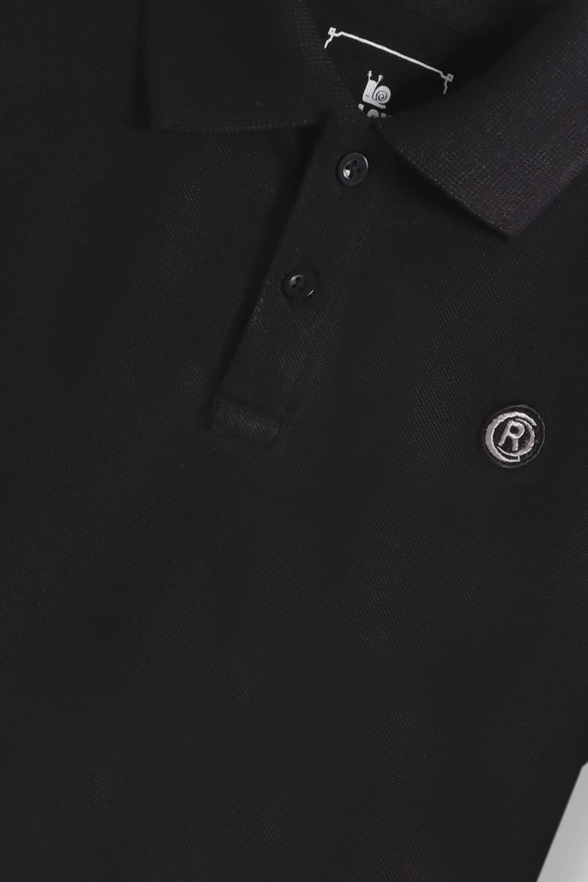 This black pique polo exudes charm and sophistication. Its soft fabric provides a comfortable fit for all-day wear. The subtle logo adds a touch of class, making it suitable for both casual occasions and more formal gatherings. Ideal for young boys who value style and elegance in their attire.
