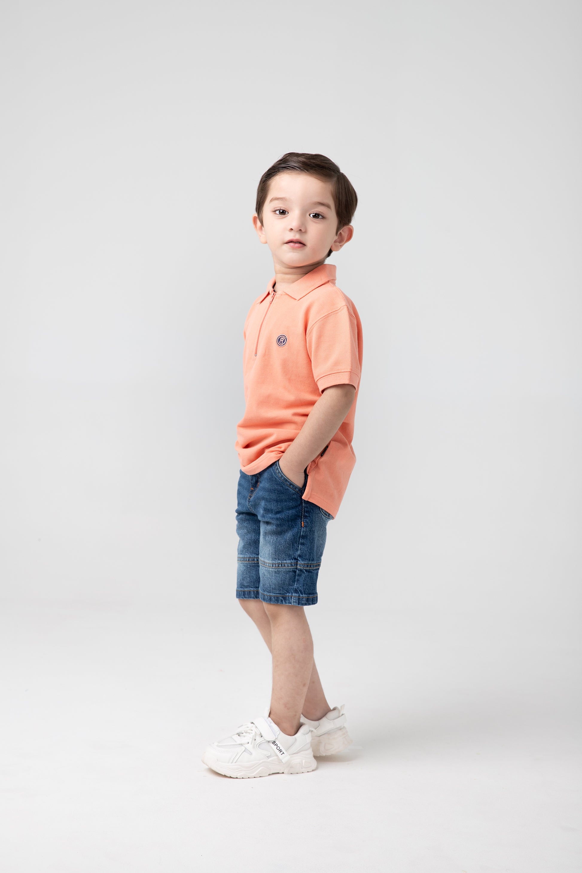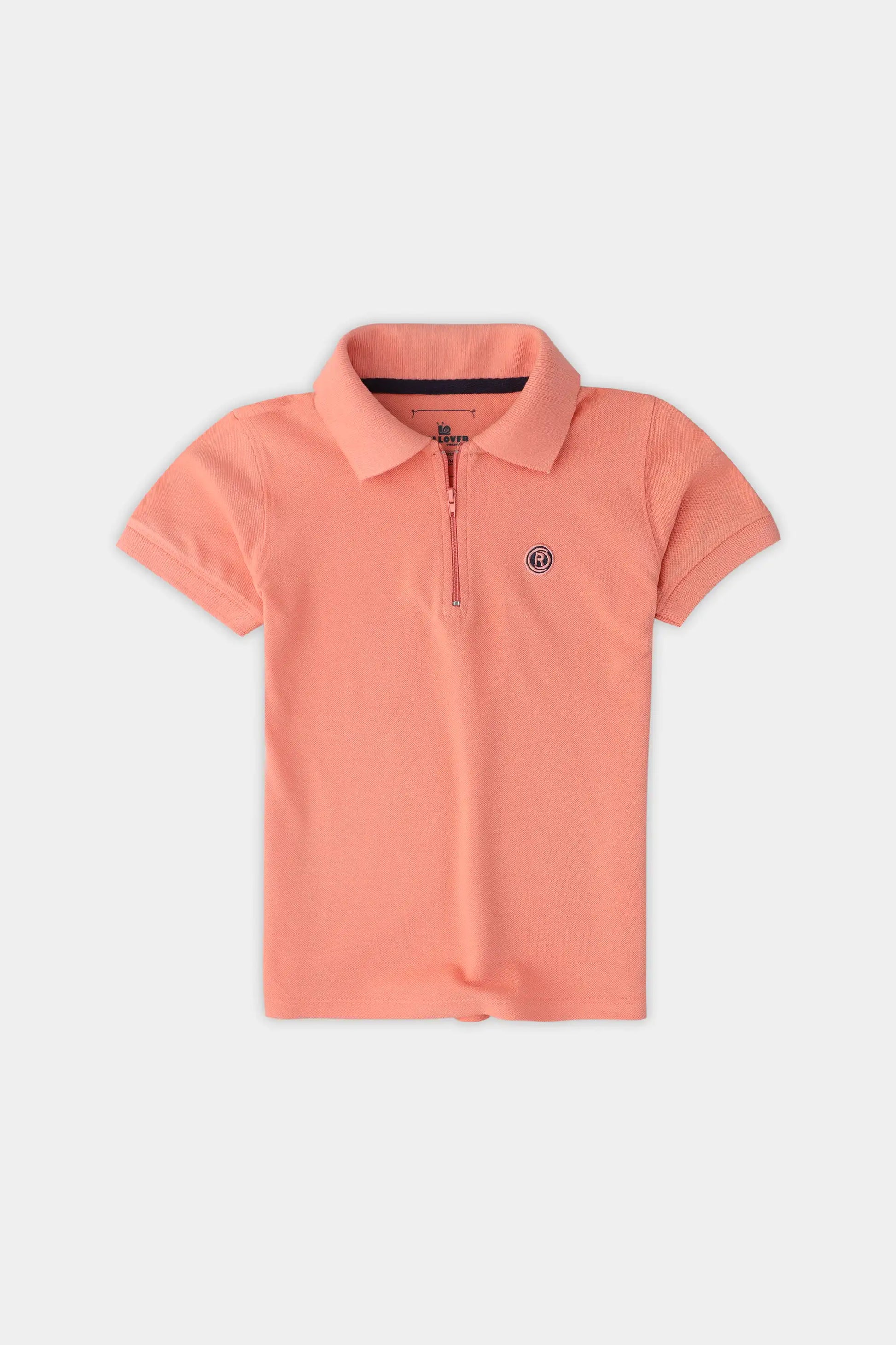 This coral-hued boys’ polo shirt, crafted in breathable pique fabric, features a sleek zip placket and ribbed collar for a polished look. Soft to touch and perfect for both casual and dressy days, it is a wardrobe essential for effortless style and all-day comfort.