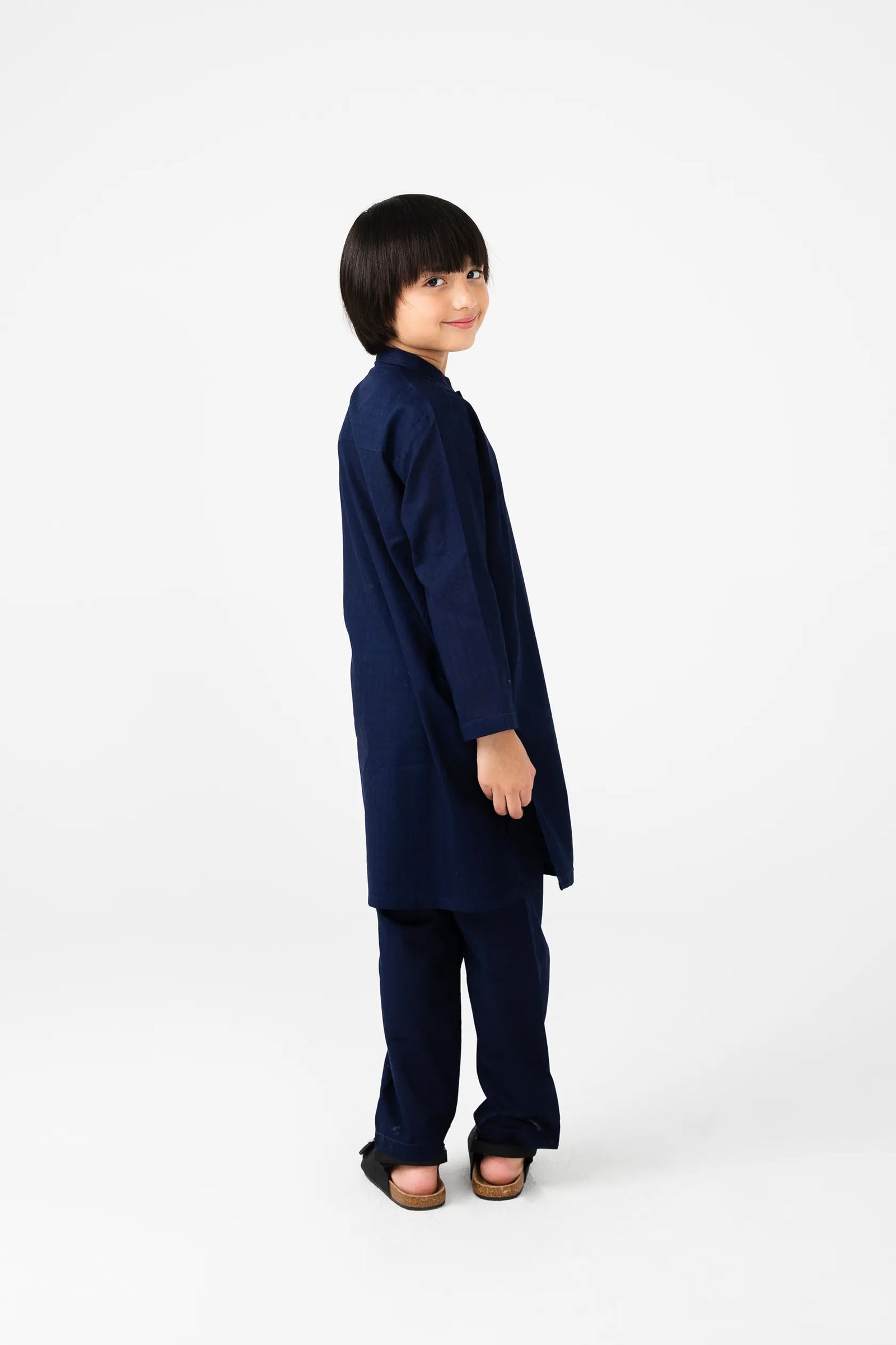 Boys Navy Blue Cotton Jacquard Kurta Set Boys Navy Blue Cotton Jacquard Kurta Set