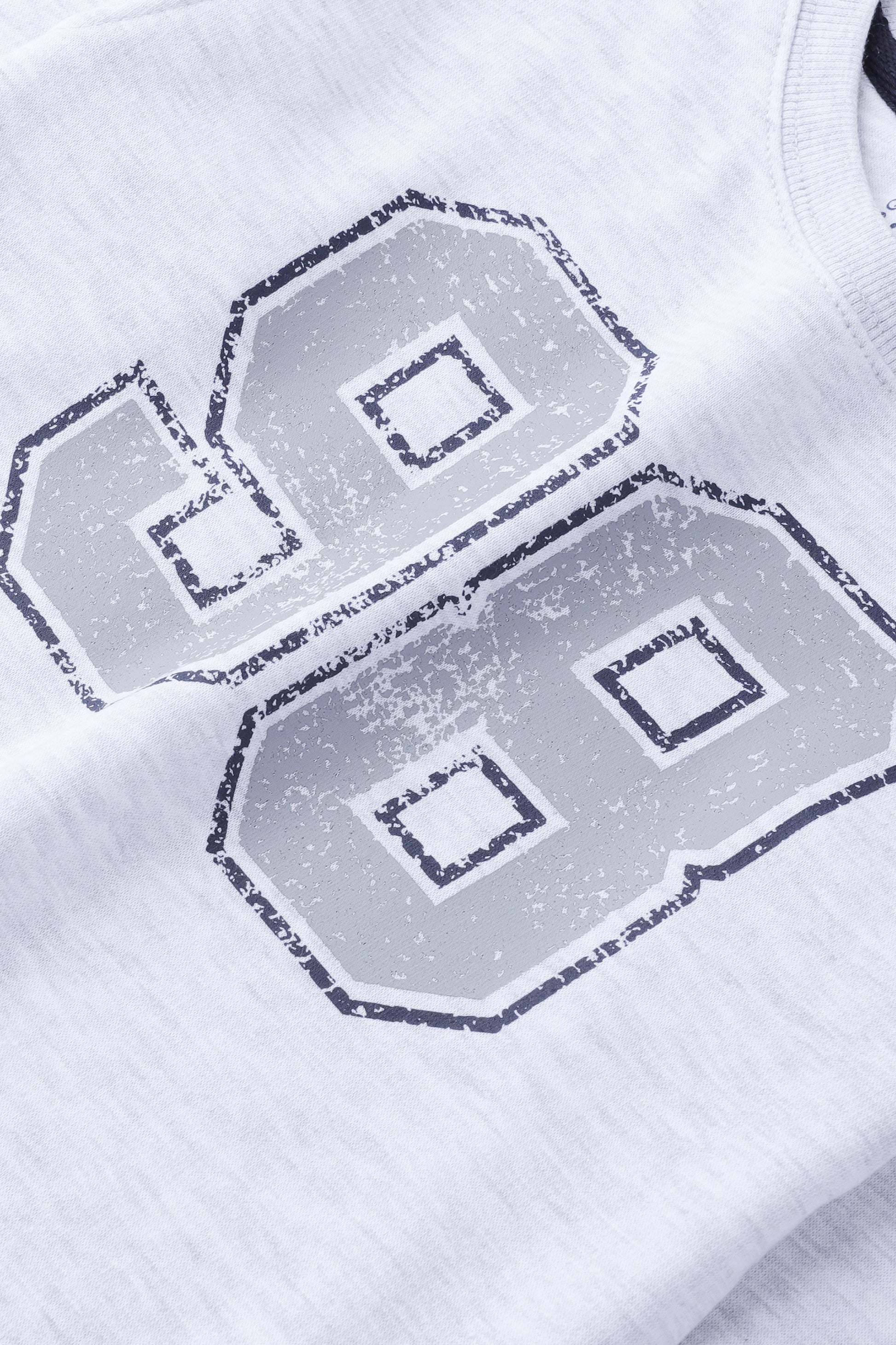 Boys Oatmeal Fleece Sweatshirt: Keep your little one warm and stylish with this oatmeal sweatshirt made from cozy fleece fabric. It has round crew ribbed neck, straight ribbed hem, and ribbed cuffs on full sleeves. The playful graphics with text '98' to add a cool touch to his outfit.