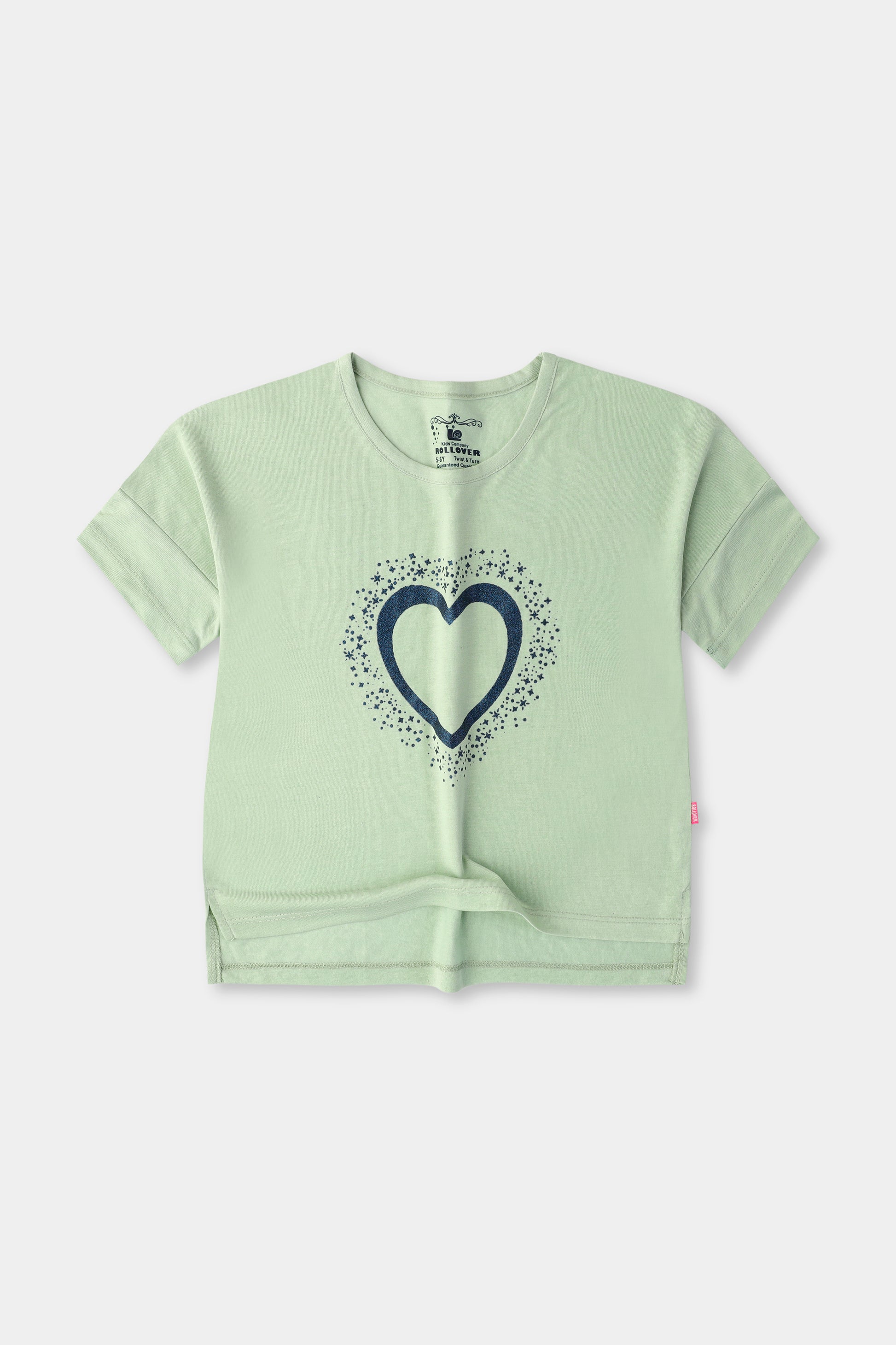 This mint jersey t-shirt is made for moments filled with sparkle and love. Featuring a bold navy heart surrounded by stardust-style speckles, its drop shoulder design and boxy silhouette bring relaxed style and comfort. A dreamy, standout piece for every little fashionista’s everyday wardrobe.