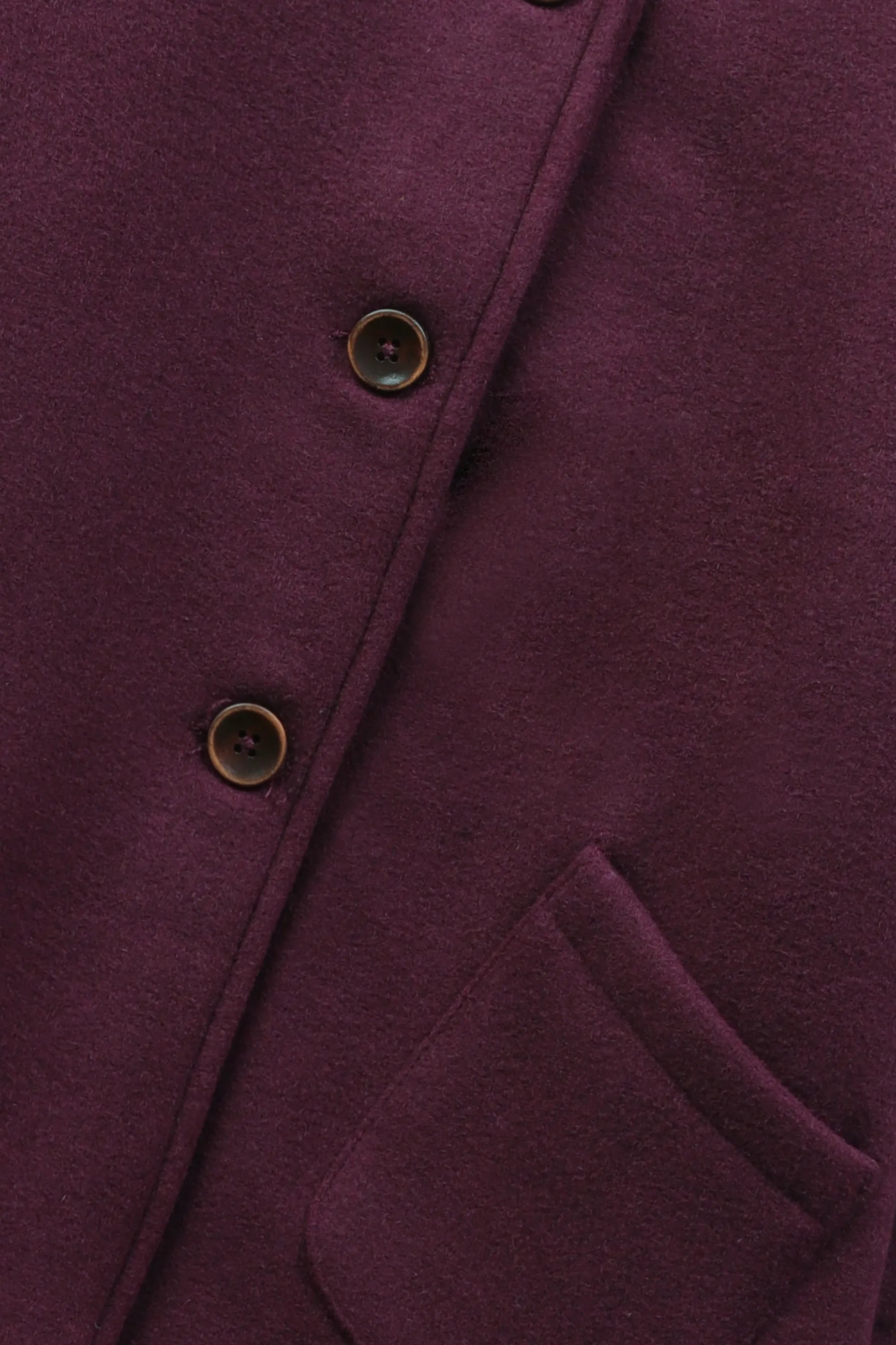 Keep her snug and stylish with this maroon felt coat. The baby collar and straight sleeves lend a classic appeal, while the front button placket ensures easy wear. Featuring two adorable pockets at the bottom, this coat is as practical as it is charming, ideal for chilly days.