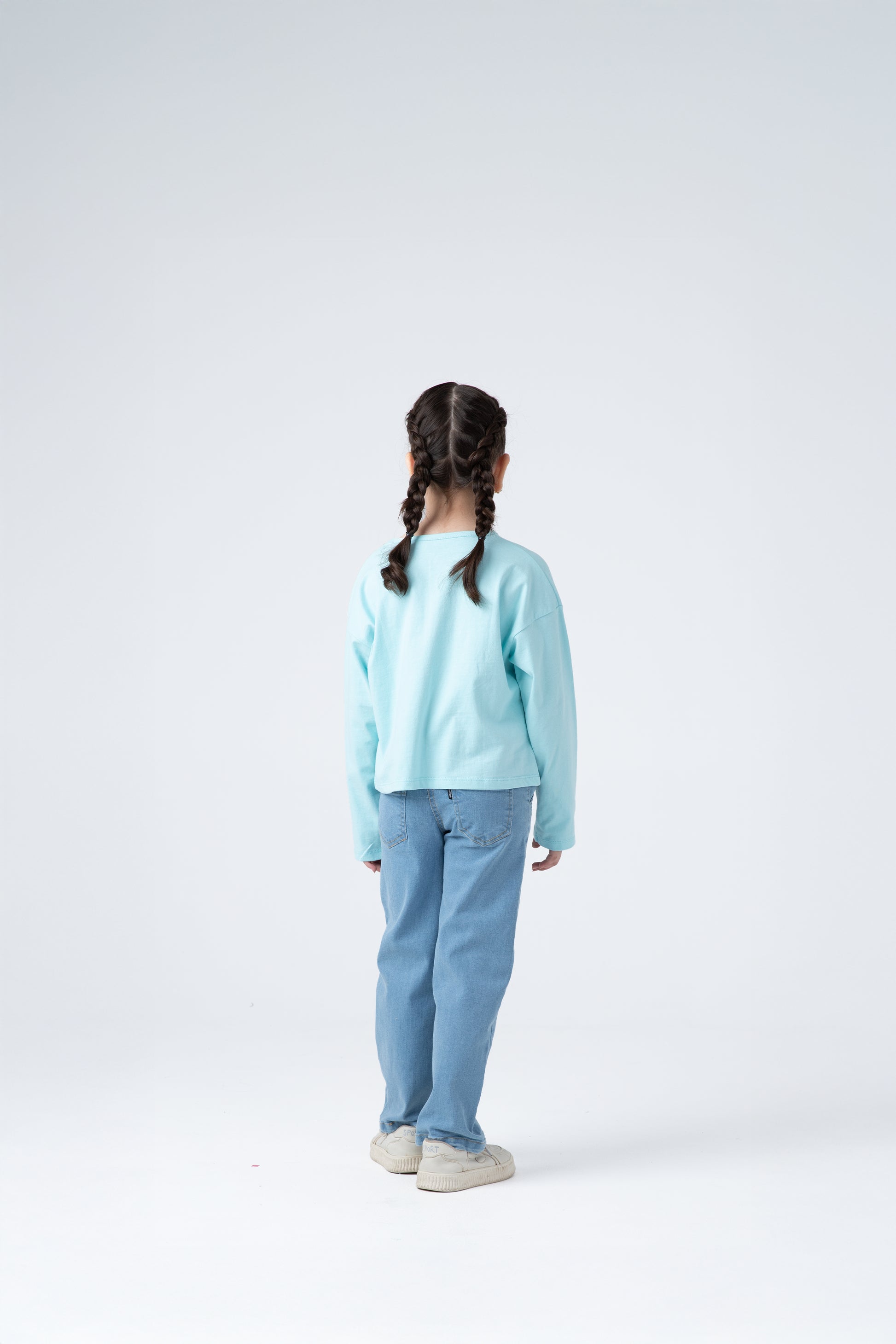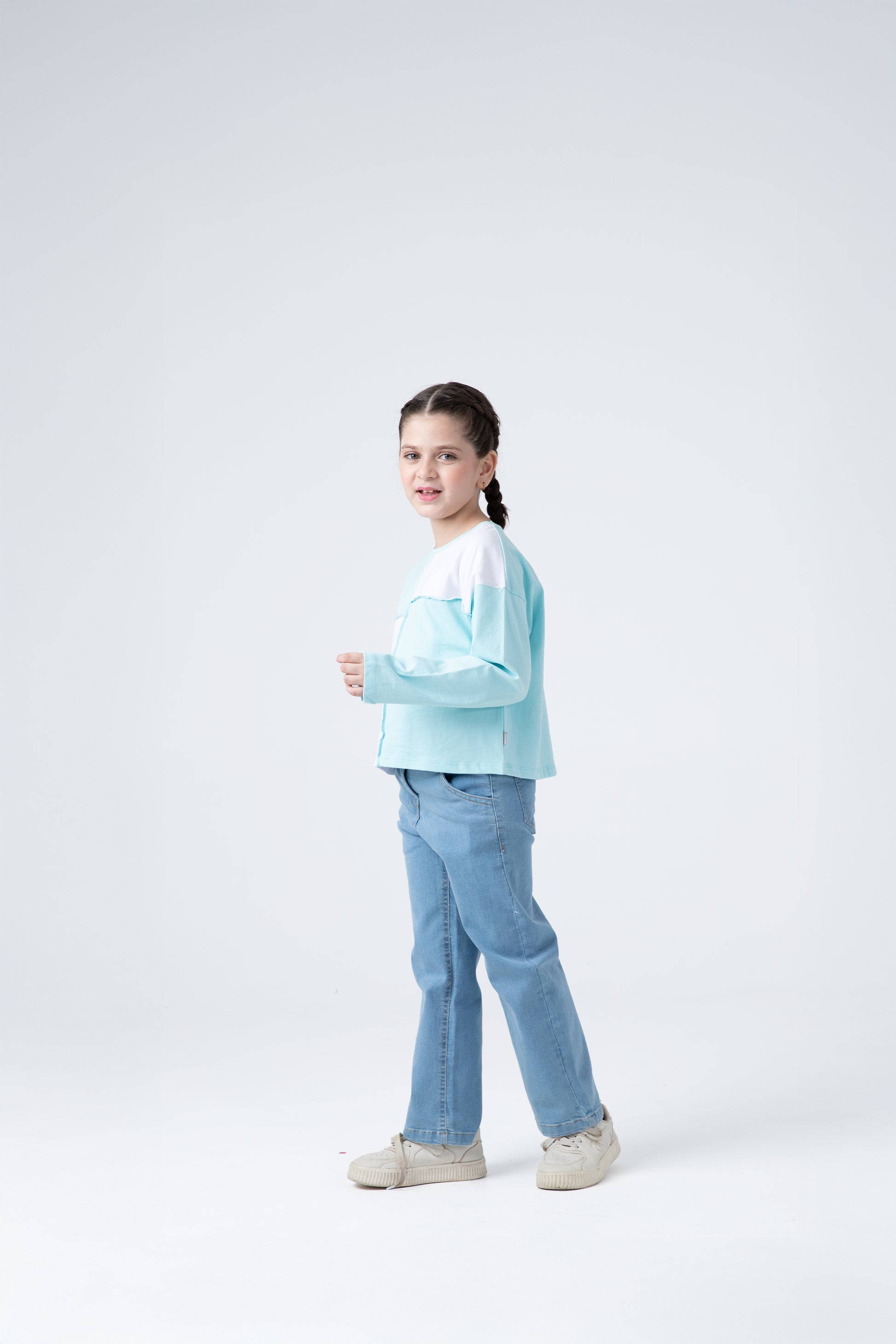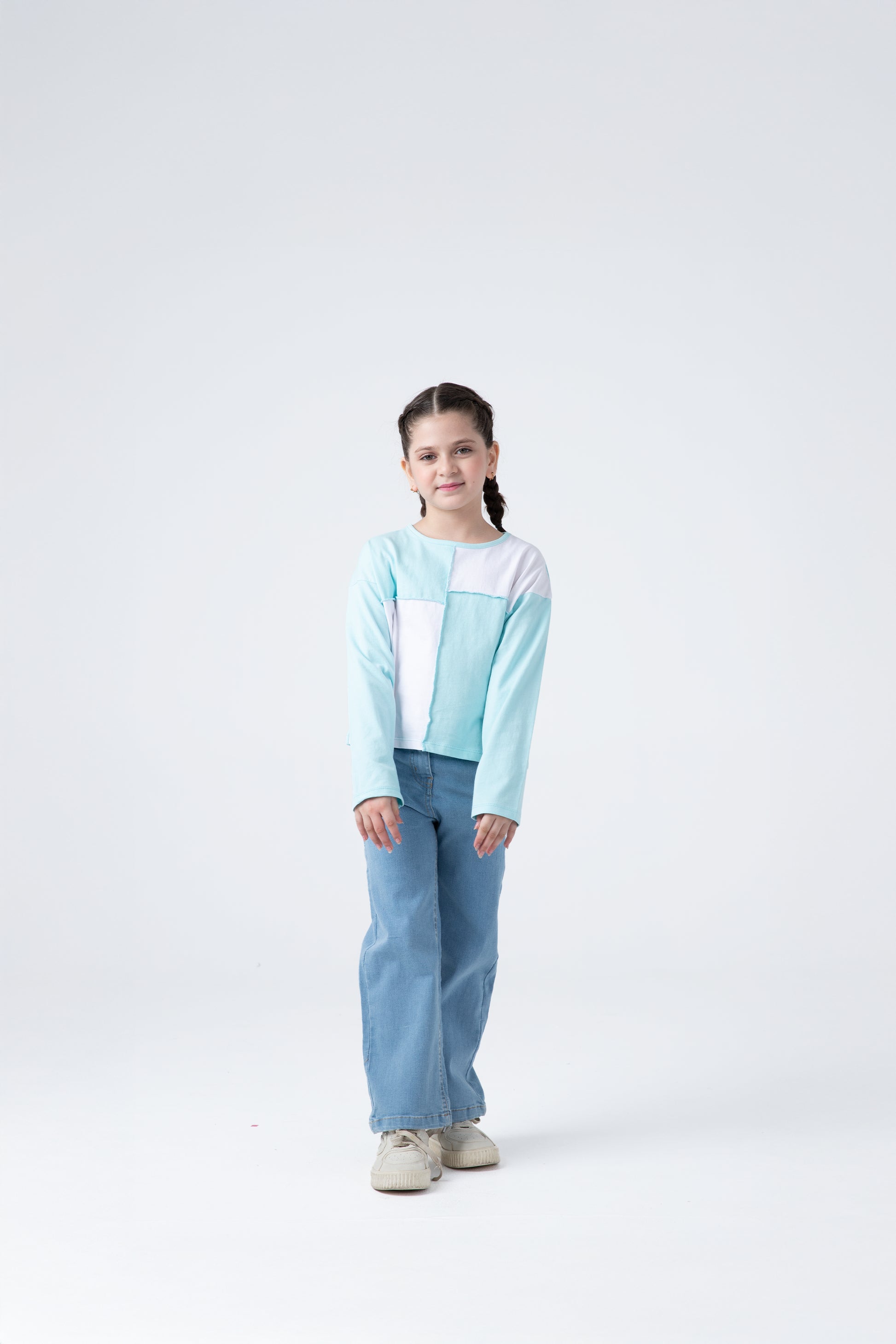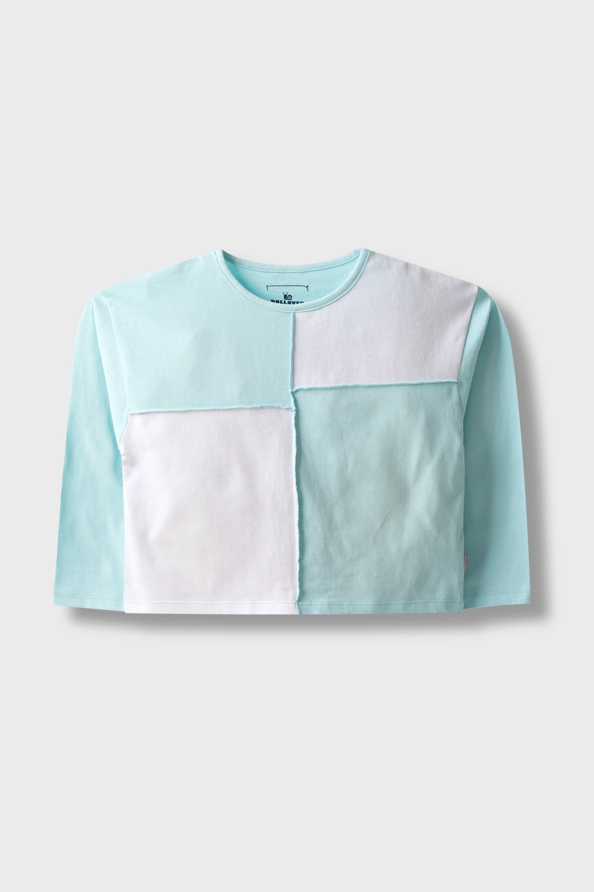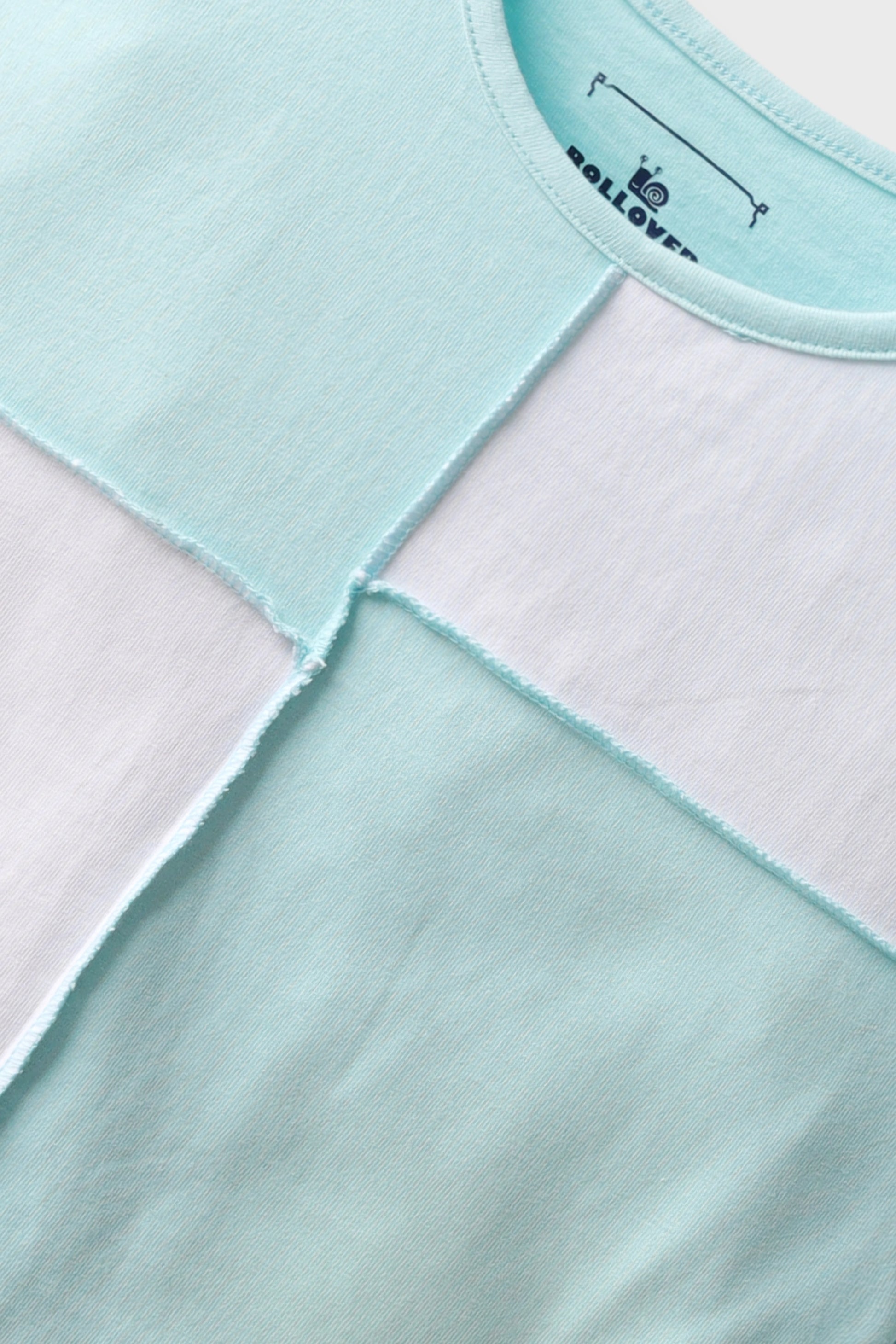Add a cool twist to her wardrobe with this dual-tone T-shirt in sky blue and white. The relaxed drop-shoulder fit and sturdy knit fabric make it ideal for everyday play. Its color-block look gives it a trendy, versatile appeal for outings or home.