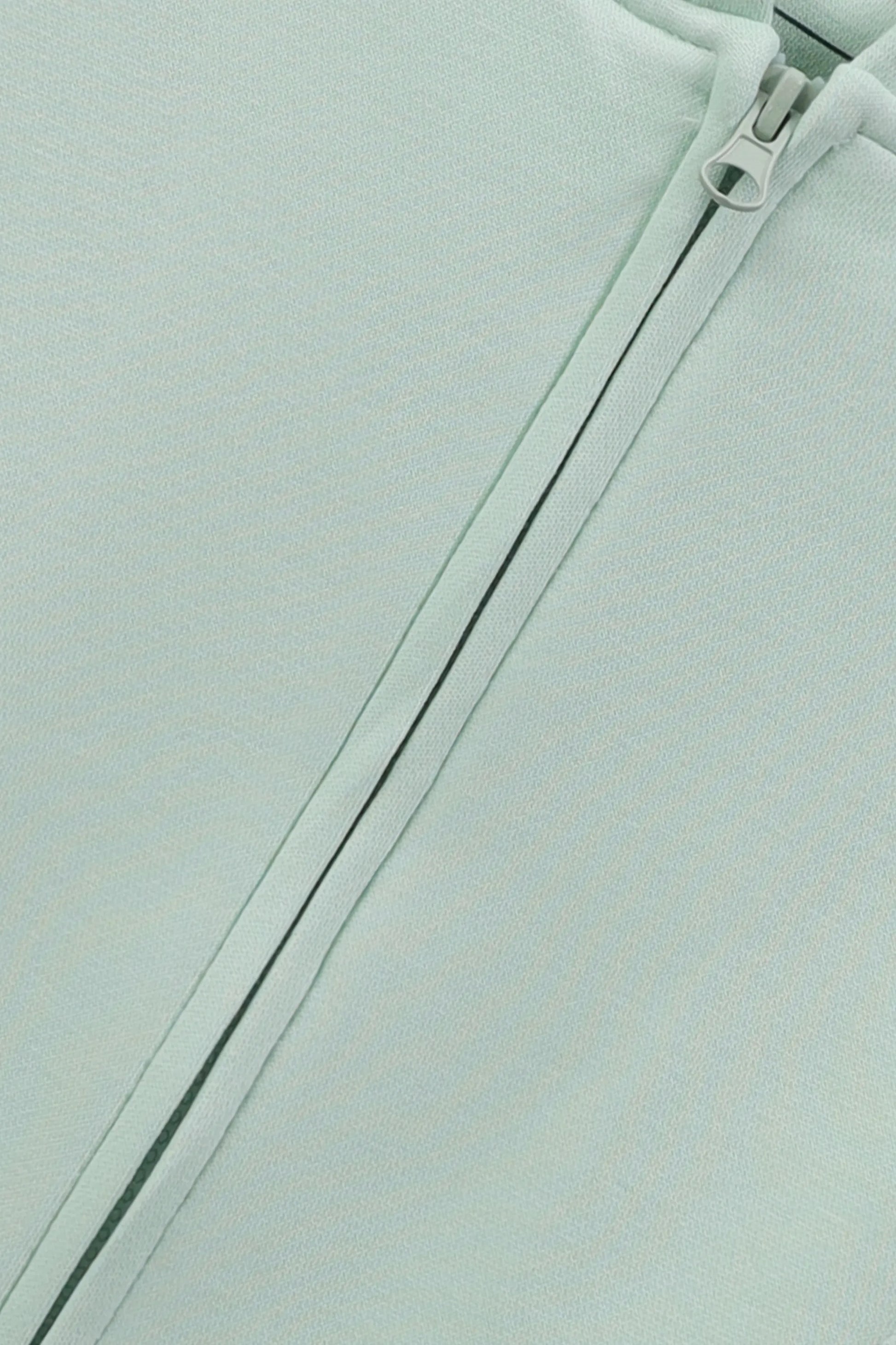 Stay wrapped in coziness with this light green fleece hoodie featuring a snug jersey-lined hood. The diagonal panel at front adds a sporty flair, while lycra ribbed cuffs and hem lock in warmth. Complete with zipped side pockets—this piece is a perfect blend of everyday style and soft layering.